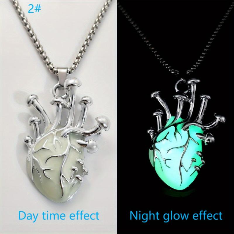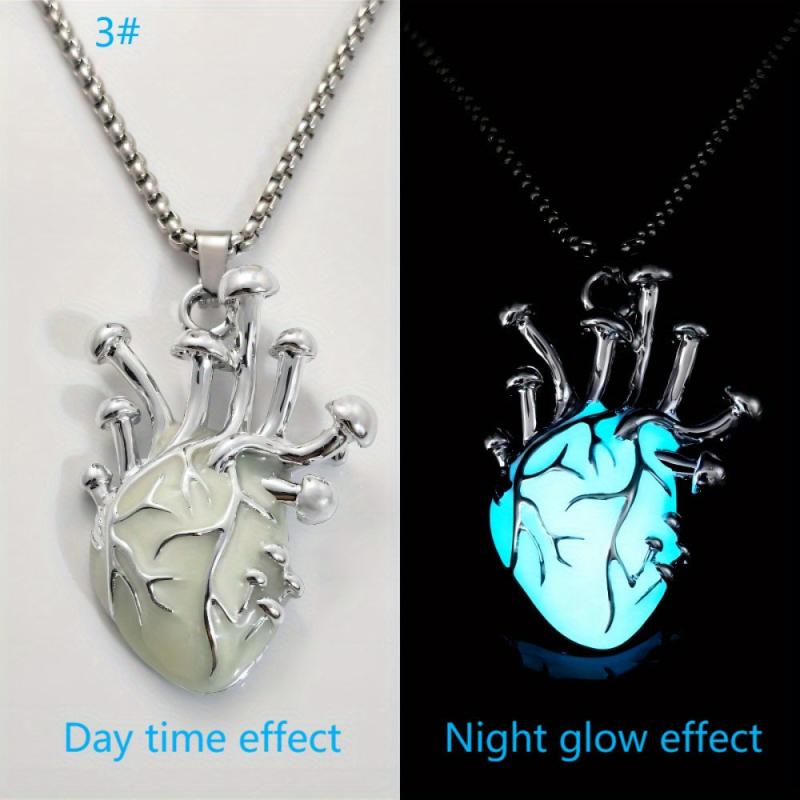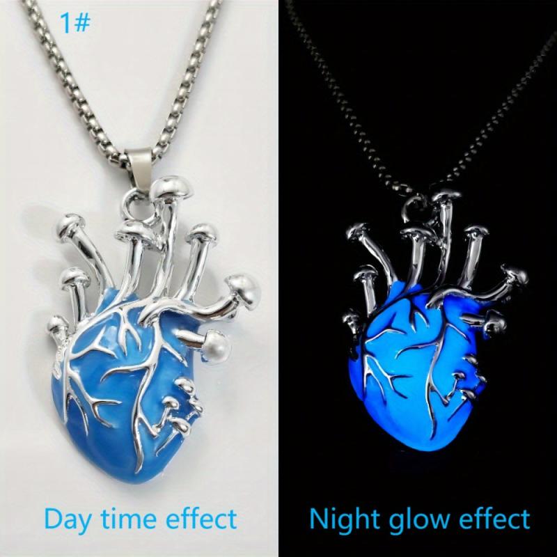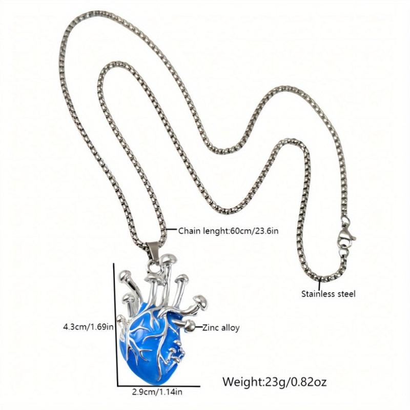 Unisex zinc alloy pendant necklace with a glowing human heart design, perfect for a punk hip hop look. Features a stainless steel chain for a statement accessory at Halloween parties. Makes a unique gift for any occasion.