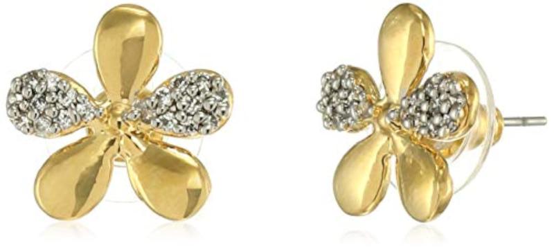 Elegant stud earrings featuring a petal design with American diamonds. Perfect for adding a touch of sparkle to any outfit.