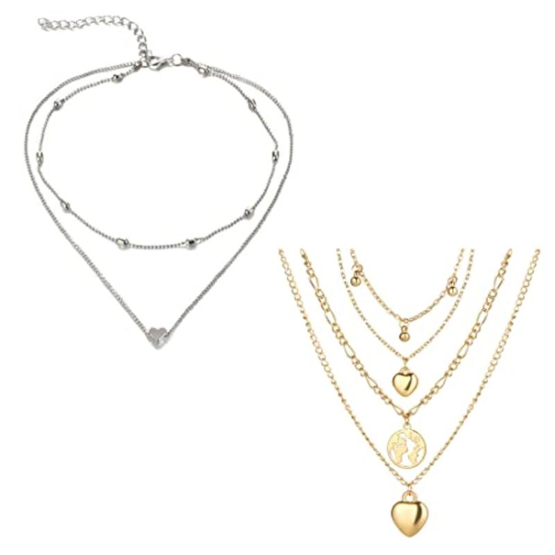 Elevate your style with this set of 2 layered necklaces featuring a mix of gold and silver-plated chains. A versatile accessory that adds a touch of elegance to any outfit.