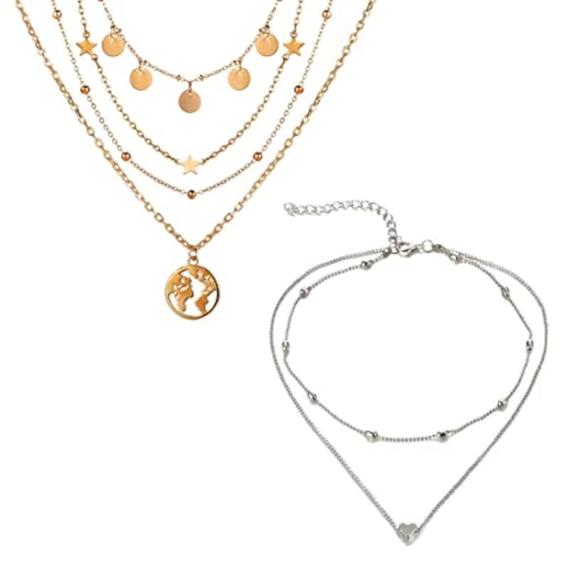 Enhance your style with this elegant layered necklace set featuring gold and silver plating. Perfect for everyday wear or special occasions.