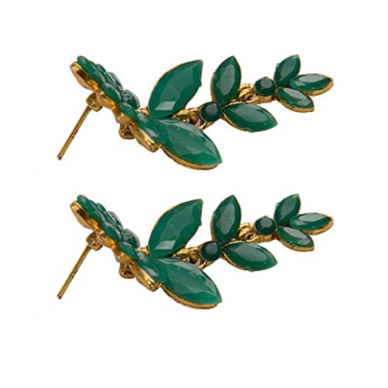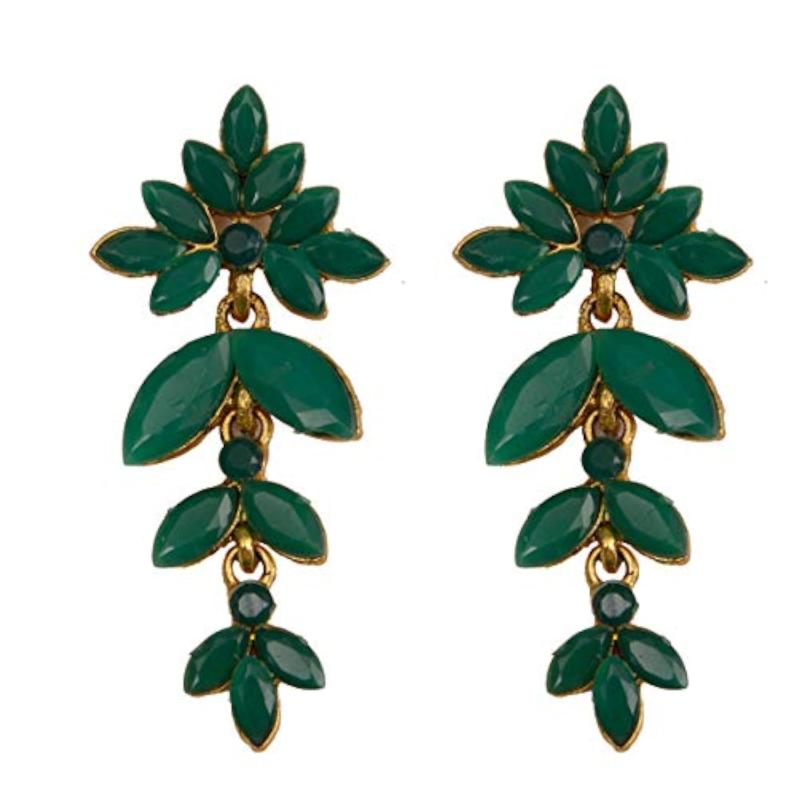 Elegant gold tone earrings featuring red crystal accents. Perfect for adding a touch of glamour to any outfit.