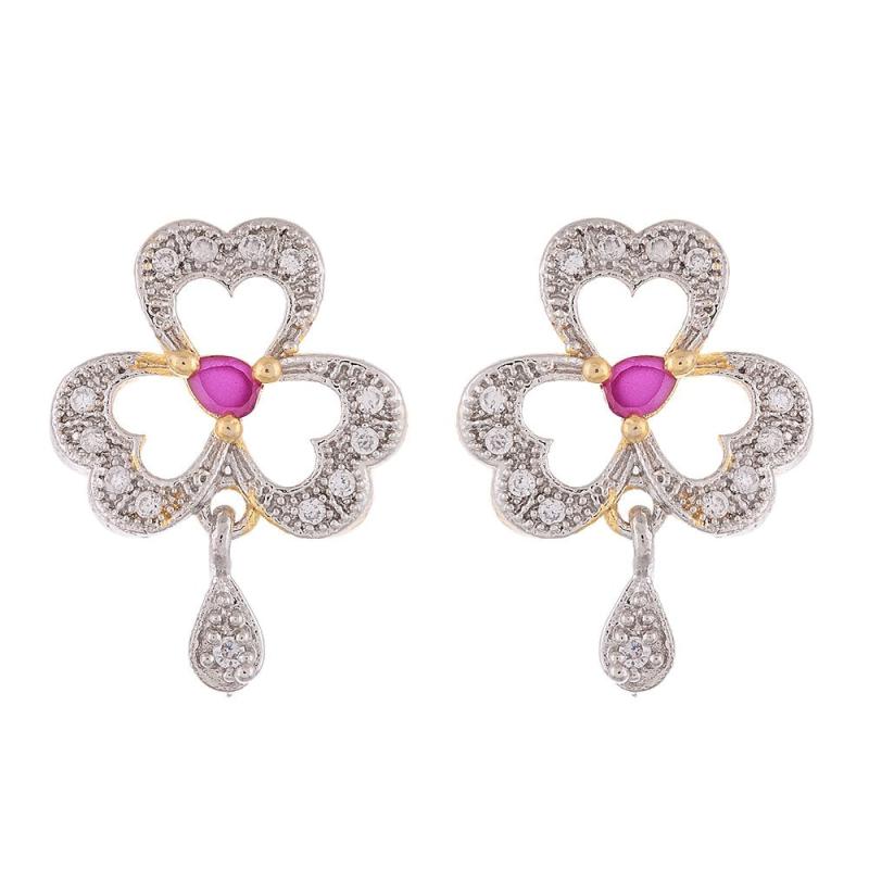 Elegant and stylish, this gold-plated brass set features a beautiful American diamond flower design. Perfect for special occasions.
