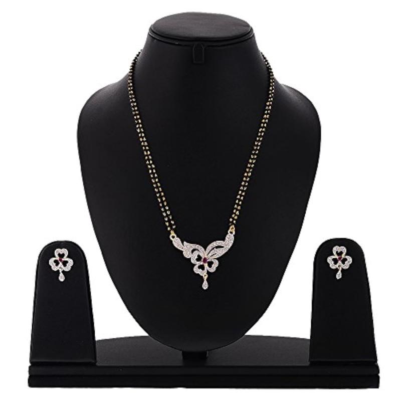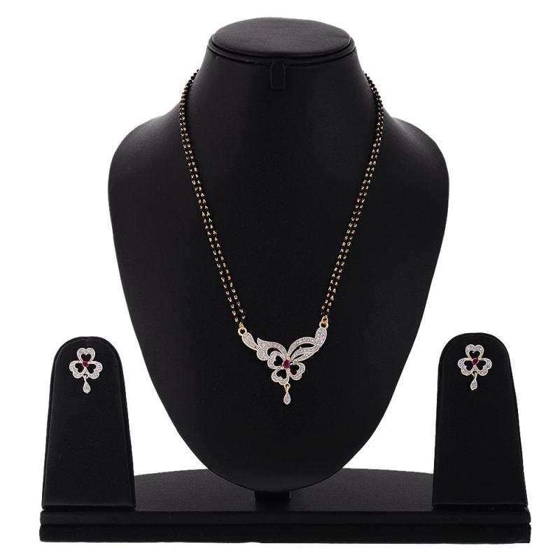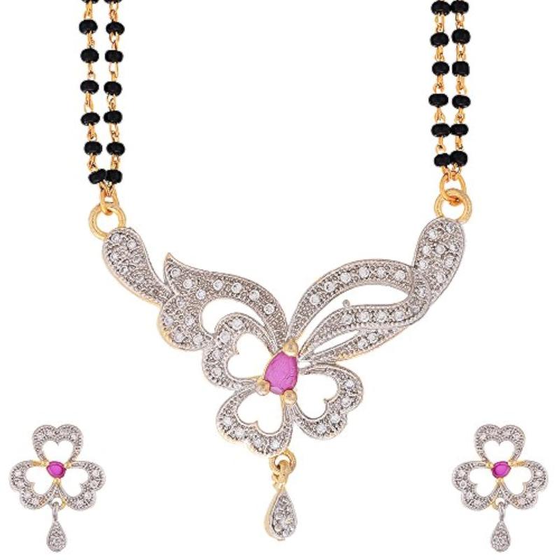 Gold-Plated Brass AD Flower Mangalsutra with Earrings Set