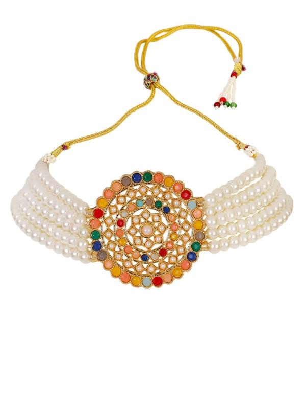 • Gold-plated choker necklace with green pearls