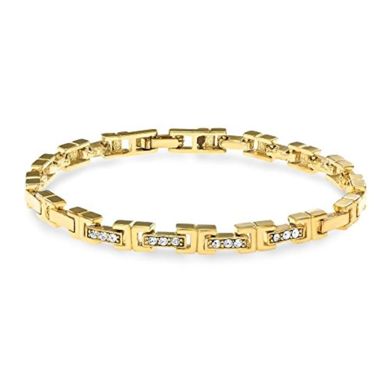 Elevate your style with this stunning gold plated bracelet adorned with sparkling crystals.