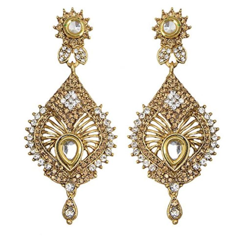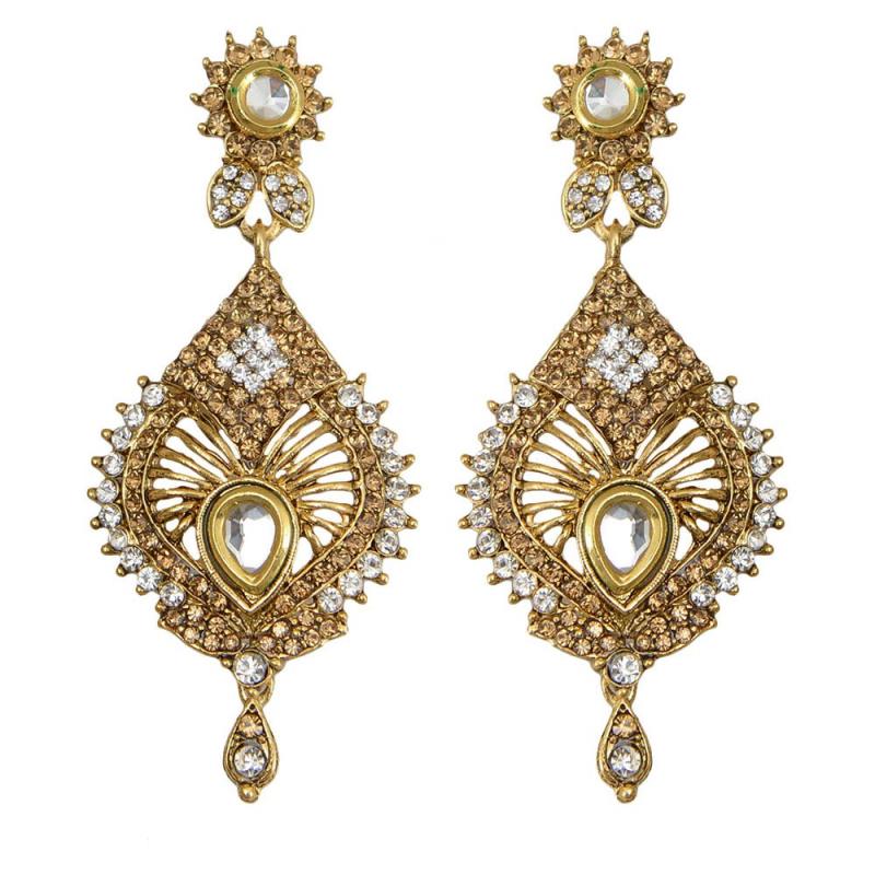 Enhance your ethnic look with this stunning gold plated earring maang tika set. Perfect for weddings and special occasions.