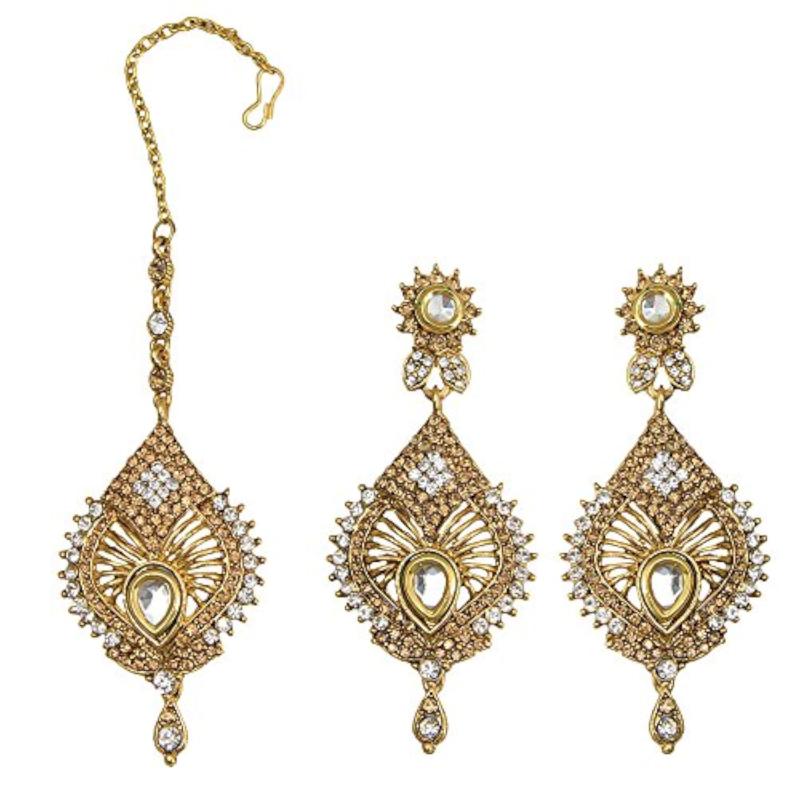 Gold Plated Earring Maang Tika Set
