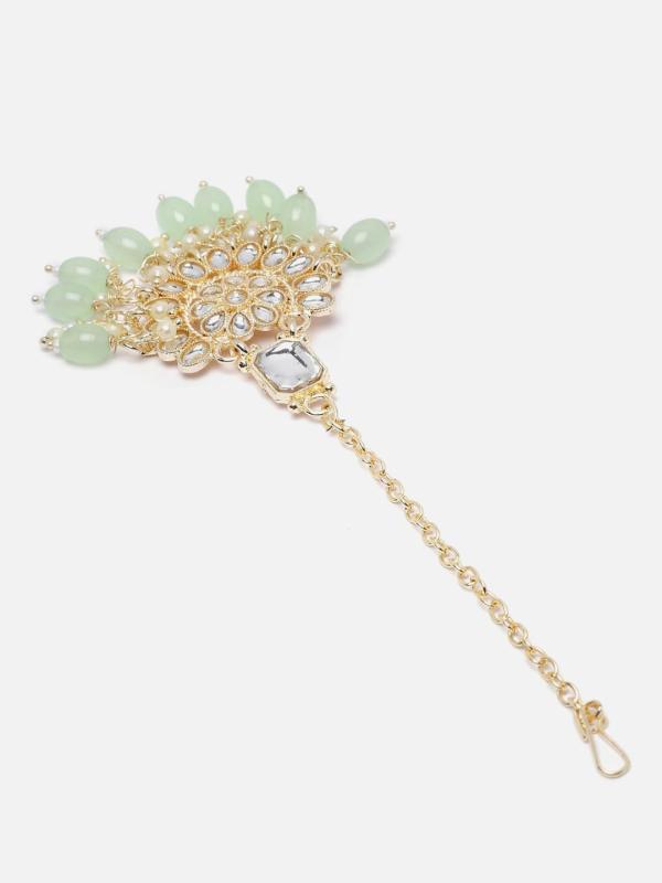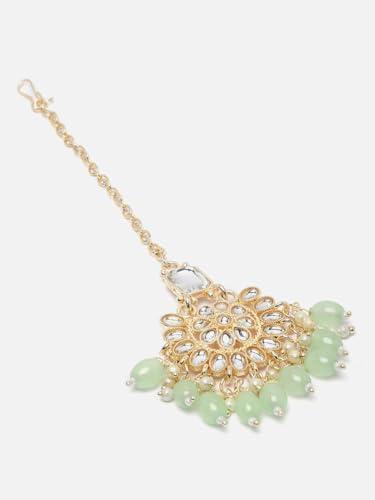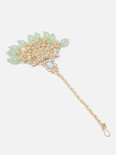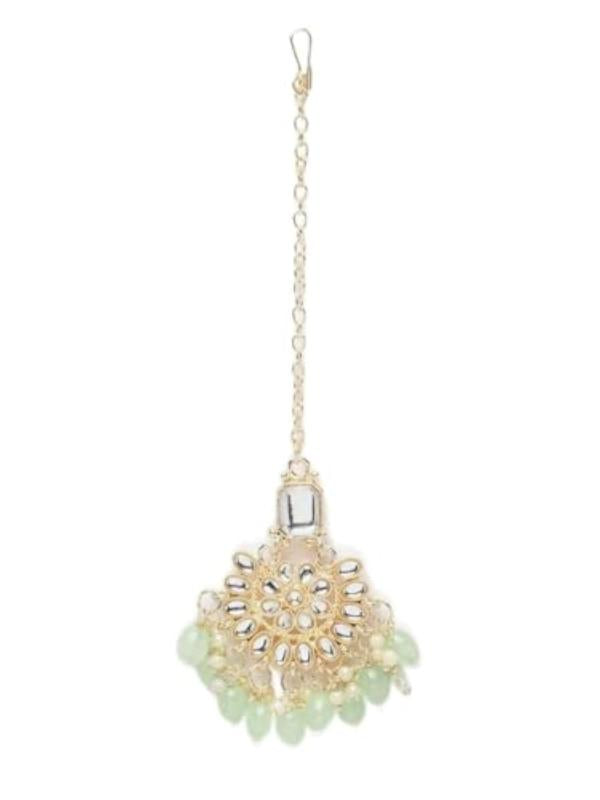 Elegant maang tikka with intricate Kundan studded floral design, perfect for traditional occasions.