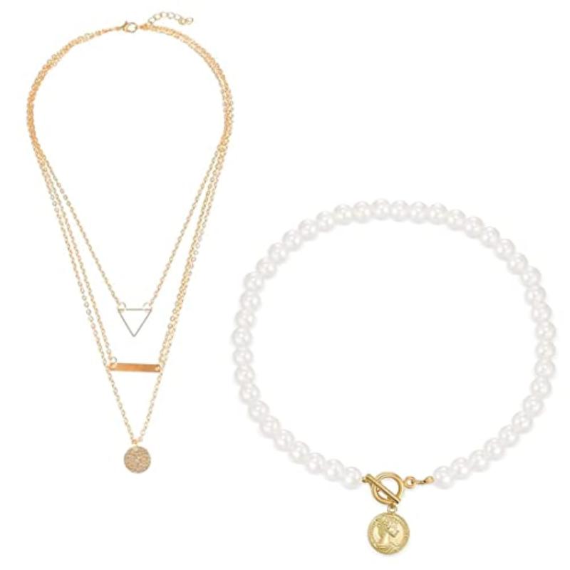 Elevate your style with this set of 2 layered necklaces featuring gold-plated chains. Perfect for adding a chic touch to any outfit.