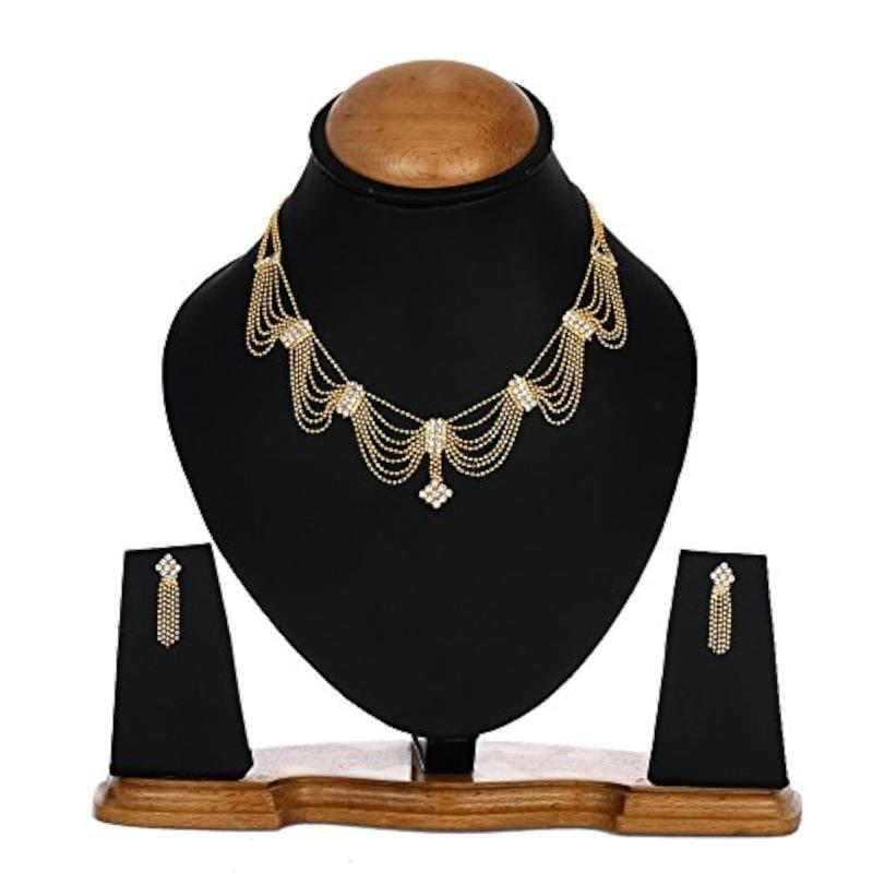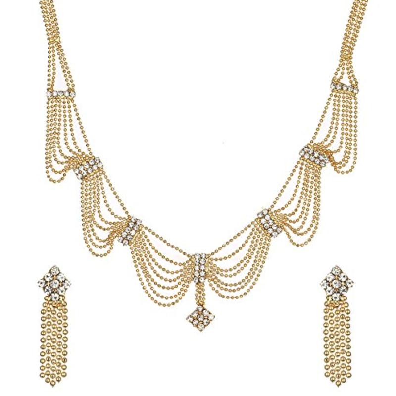 Elegant American Diamond multi-strand necklace with dangler earrings. Perfect for special occasions.