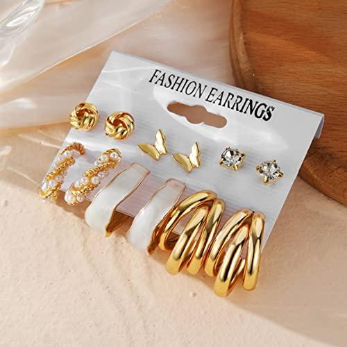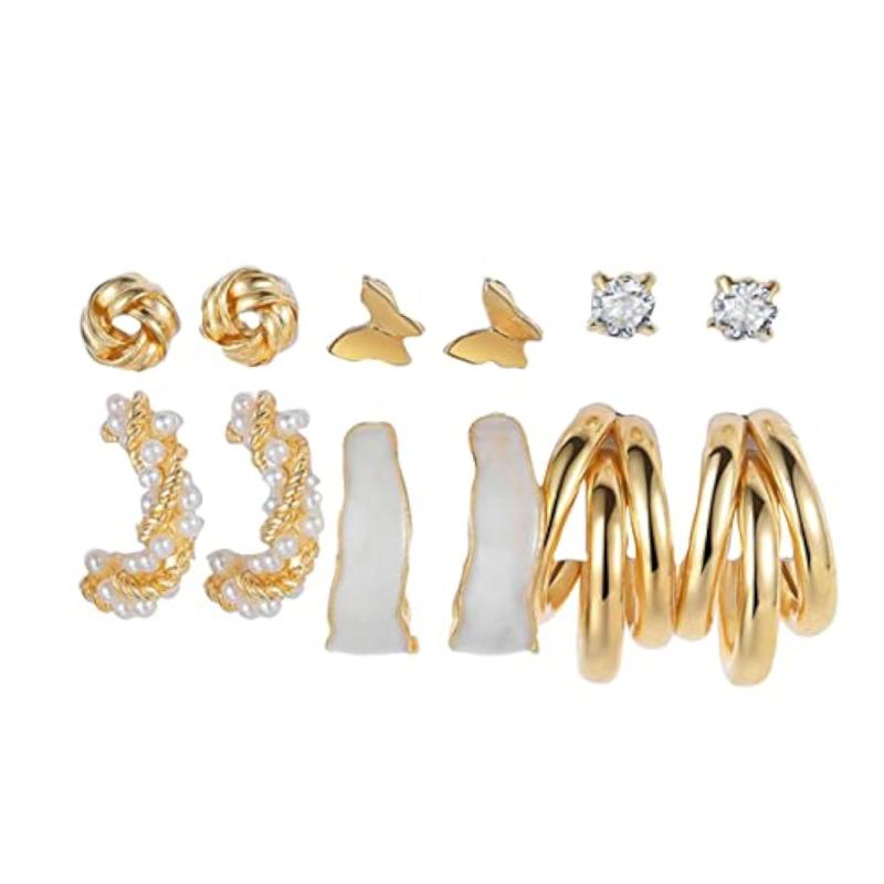 Enhance your look with this stylish set featuring a mix of gold-tone studs and hoop earrings. Perfect for everyday wear or special occasions.