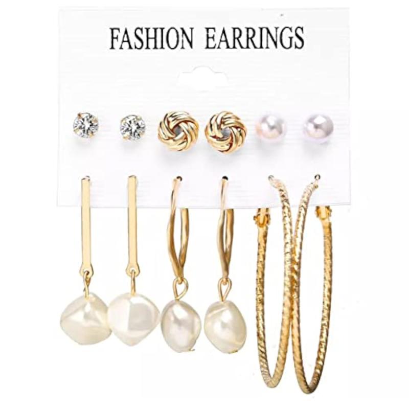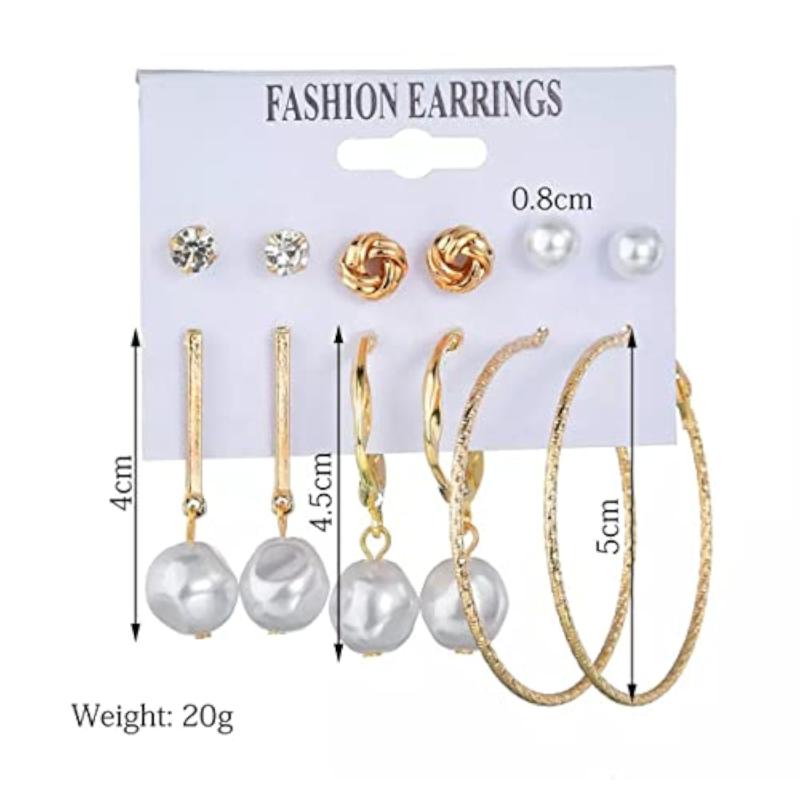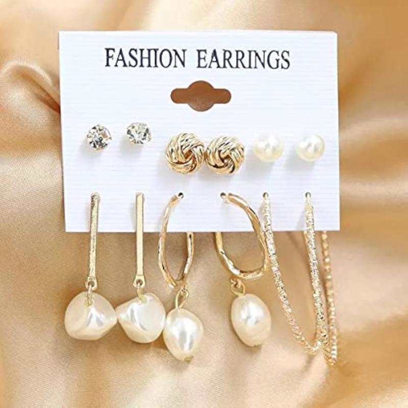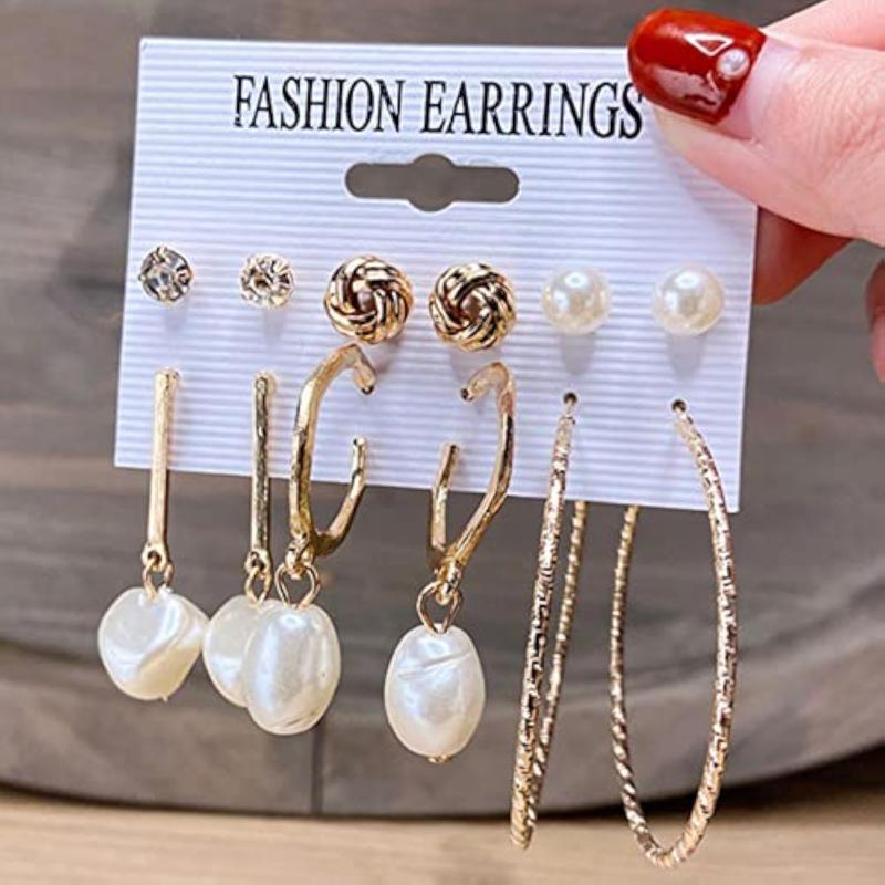 Complete your jewelry collection with this versatile set of gold-toned earrings. The set includes 2 pairs of studs, 2 pairs of hoops, and 2 pairs of drop earrings, perfect for everyday wear or special occasions.