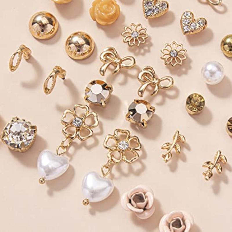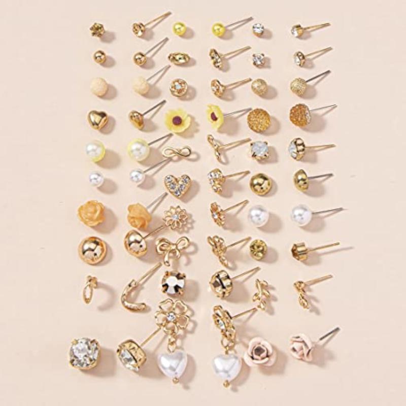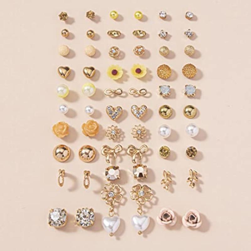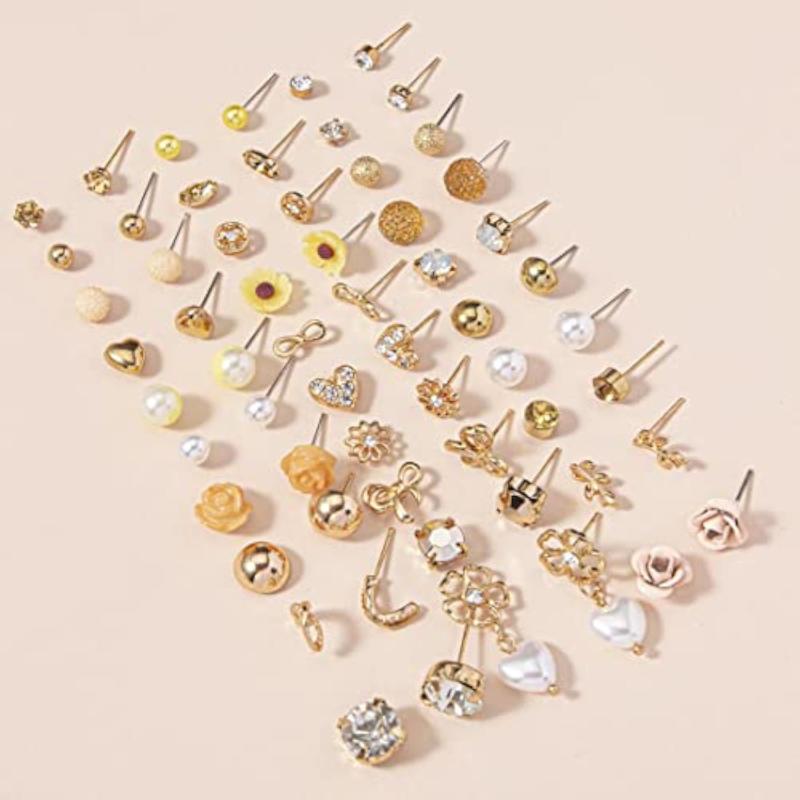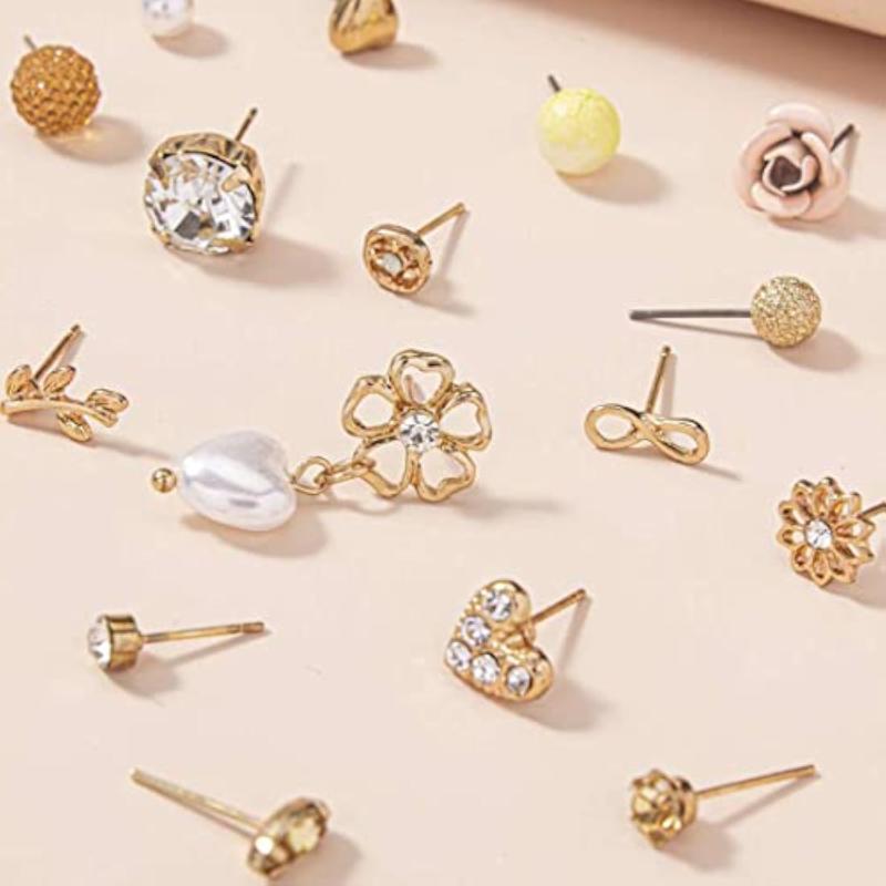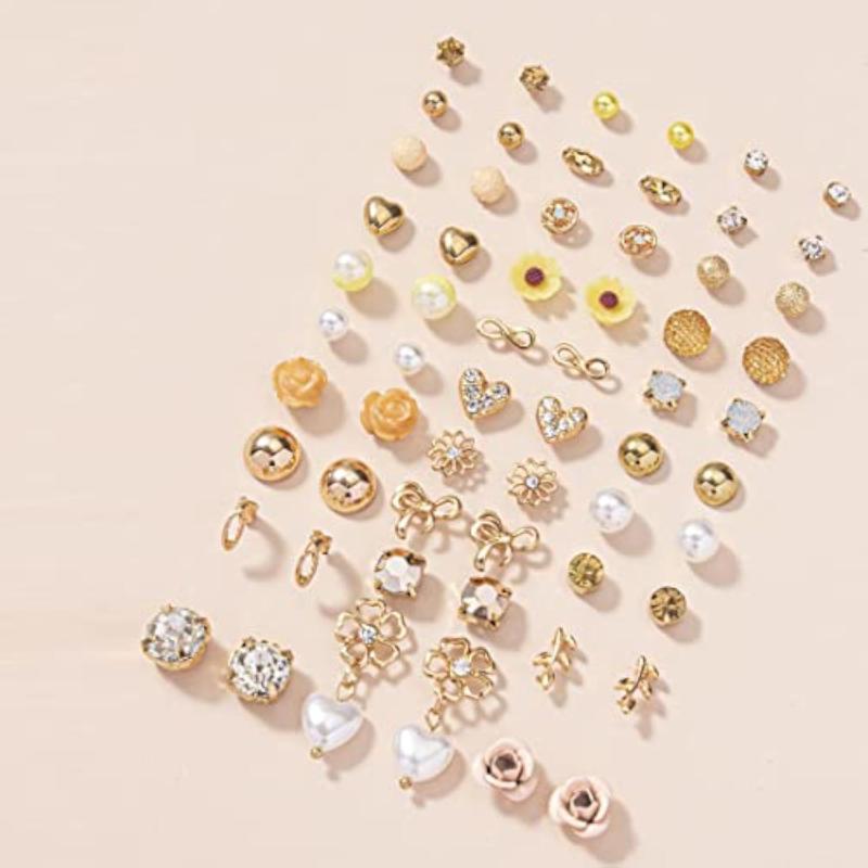 Elevate your style with this combo of 30 pairs of gold-toned studs. These trendy earrings add a touch of glamour to any outfit.