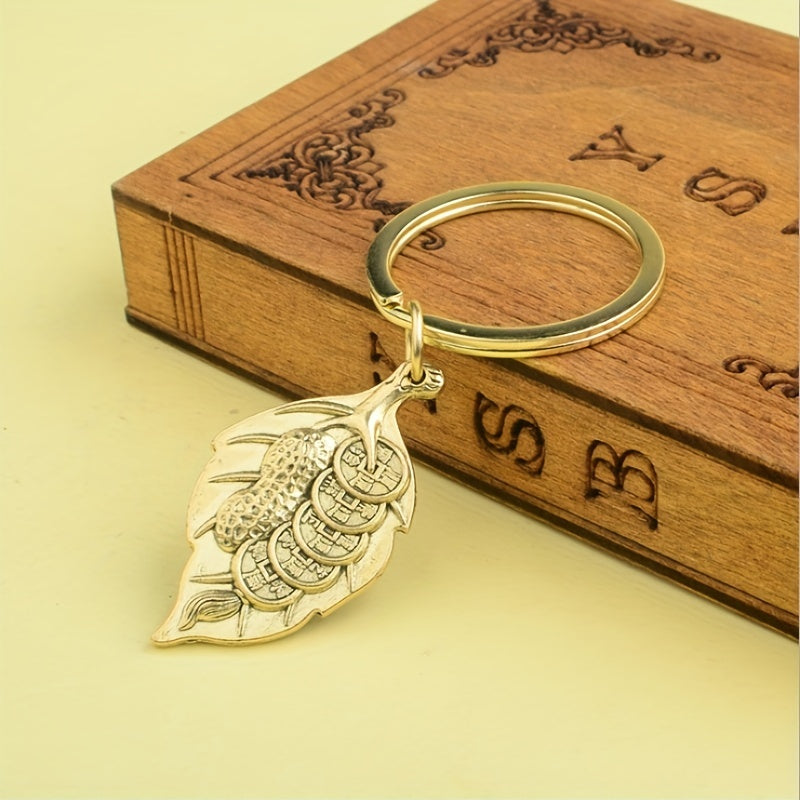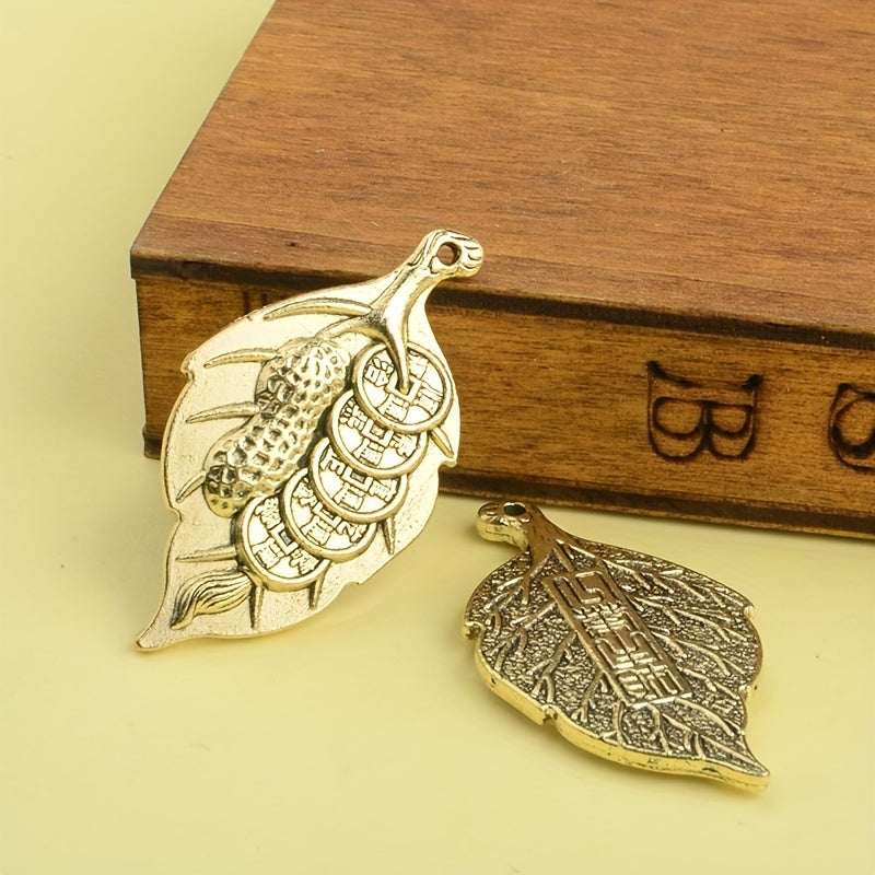 Add a touch of elegance with these golden alloy leaf pendant key chain jewelry accessories. Perfect for DIY projects and crafting.