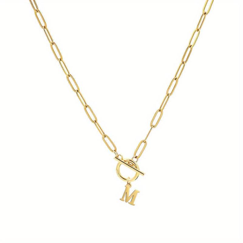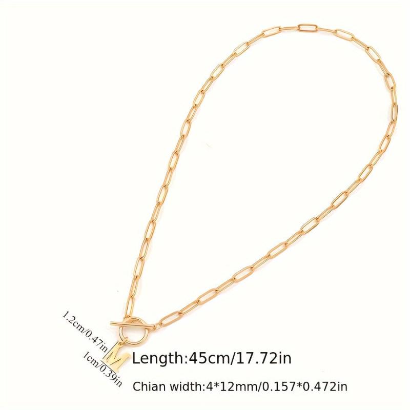 Elevate your style with this trendy alphabet pendant necklace featuring a hip hop style OT clasp paperclip chain. Perfect for women who love letter charm jewelry.
