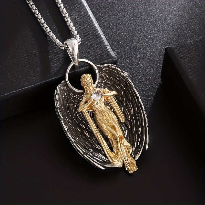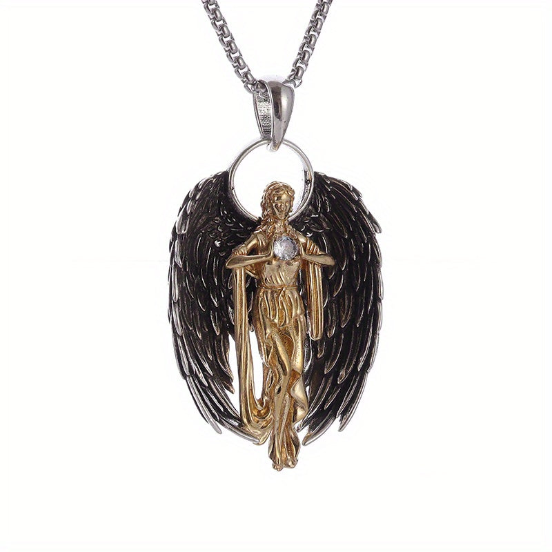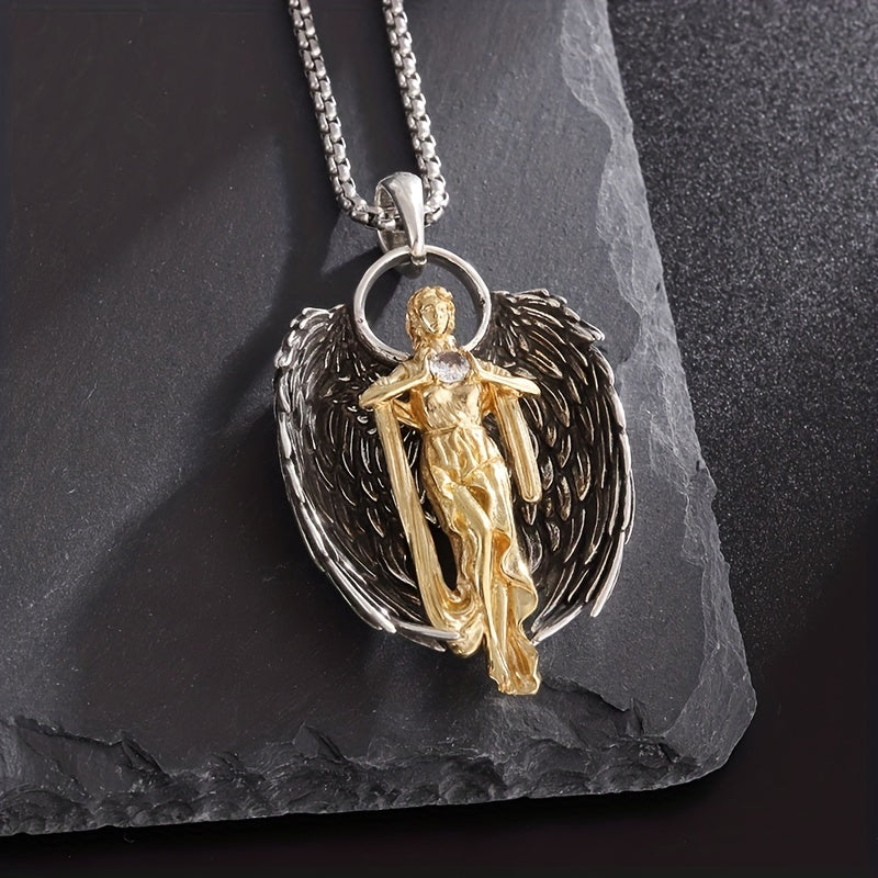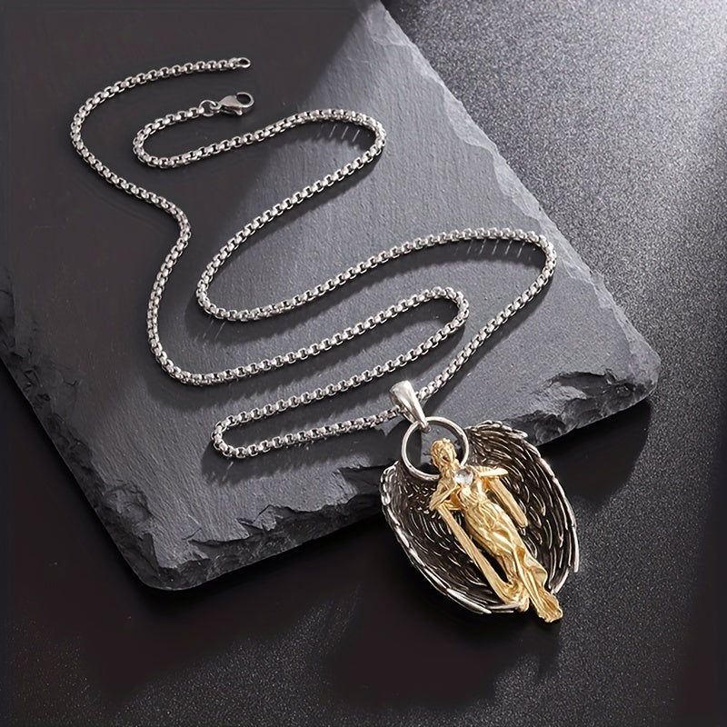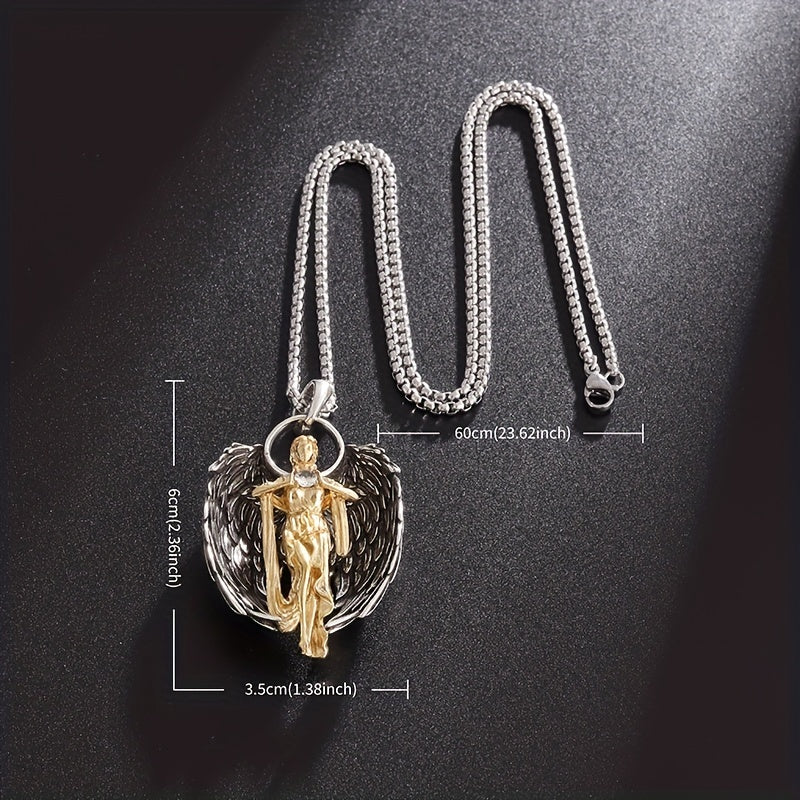 Elegant golden angel necklace crafted from high-quality alloy. Perfect gift for men or women, suitable for couples.