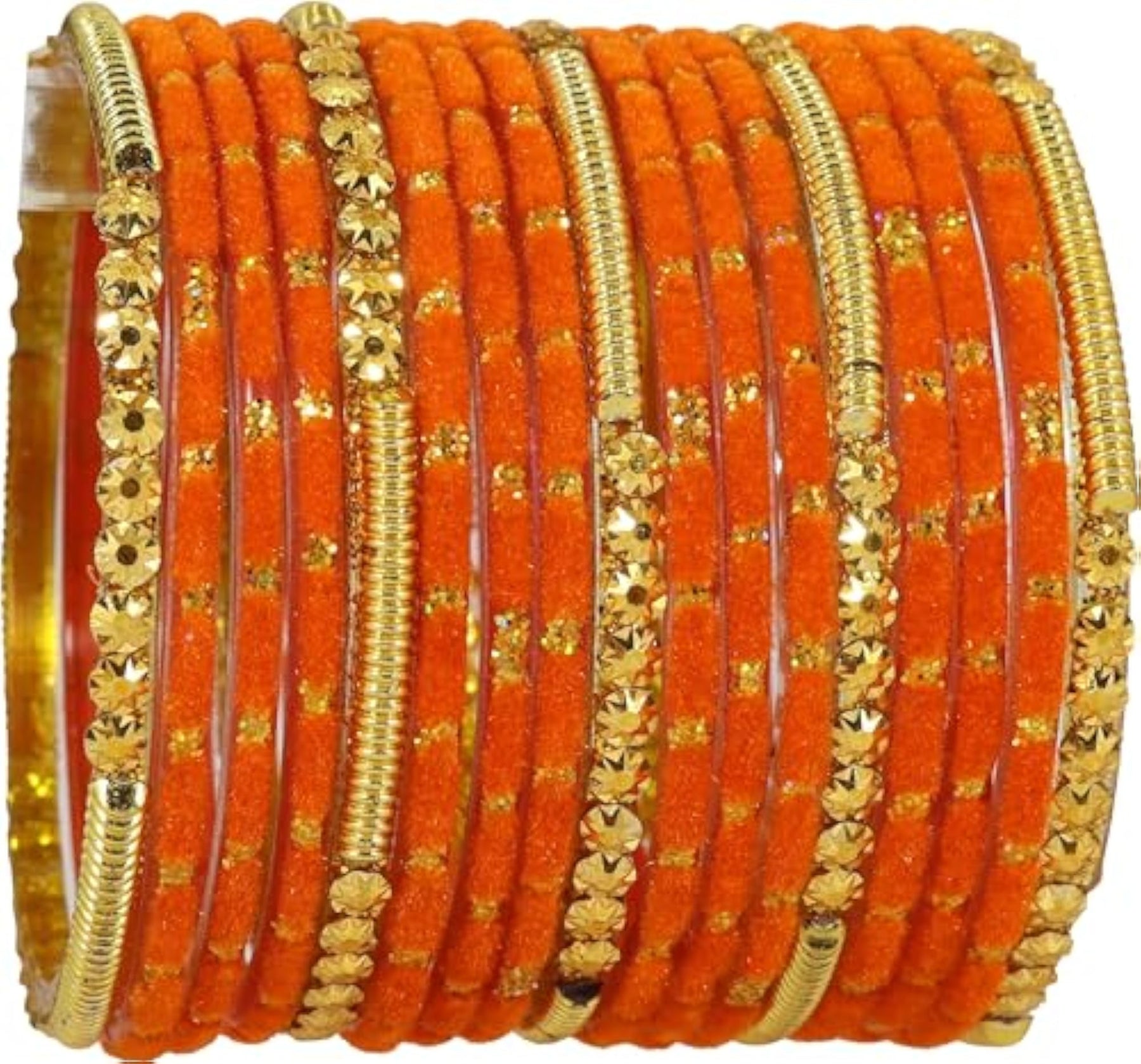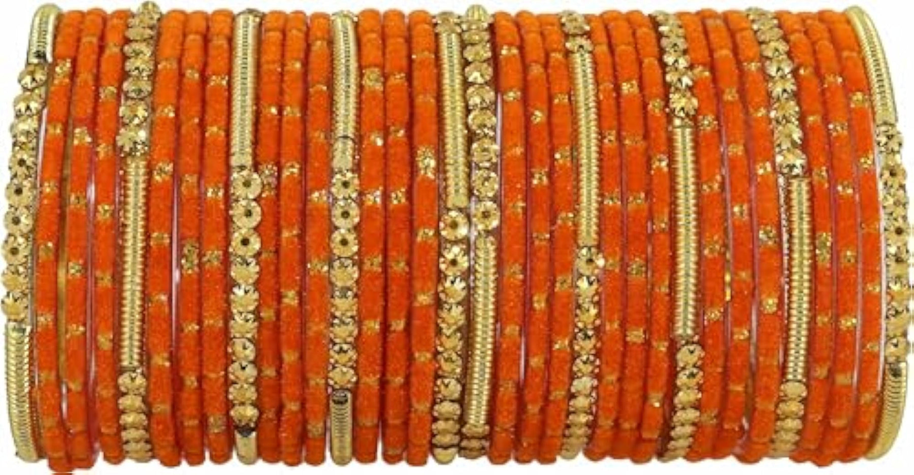 Add a touch of elegance to your outfit with this stylish chudi jewellery set. The set includes fancy glass bangles with golden beads and polka dots on velvet material. Perfect for special occasions.