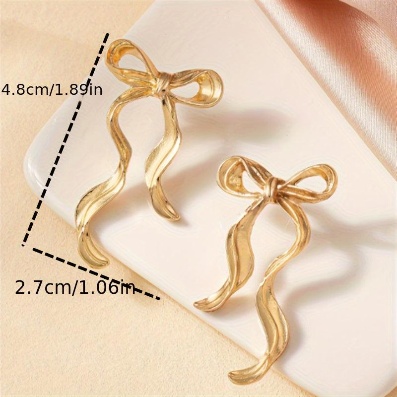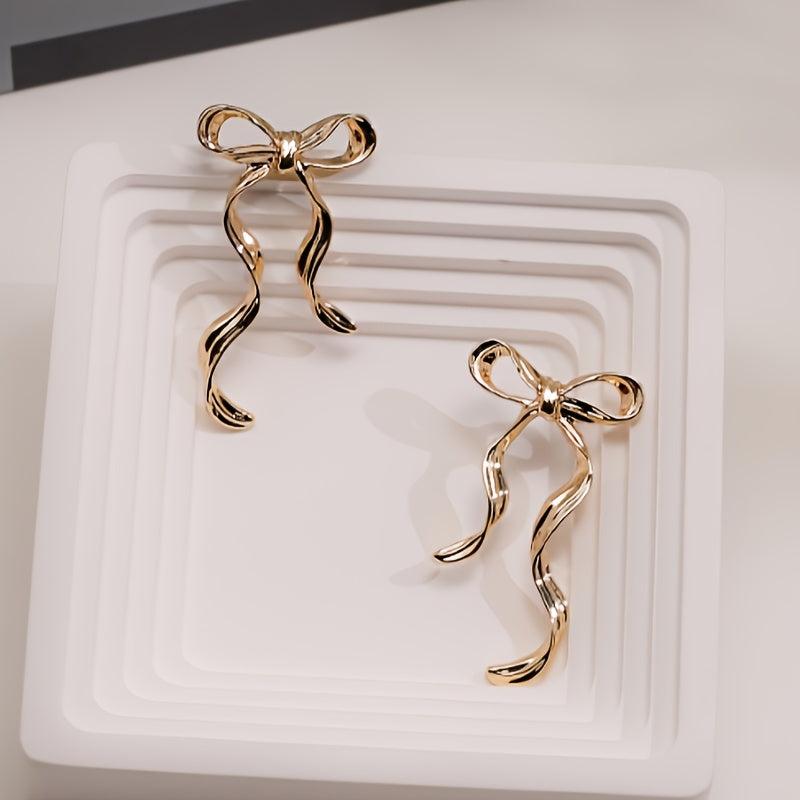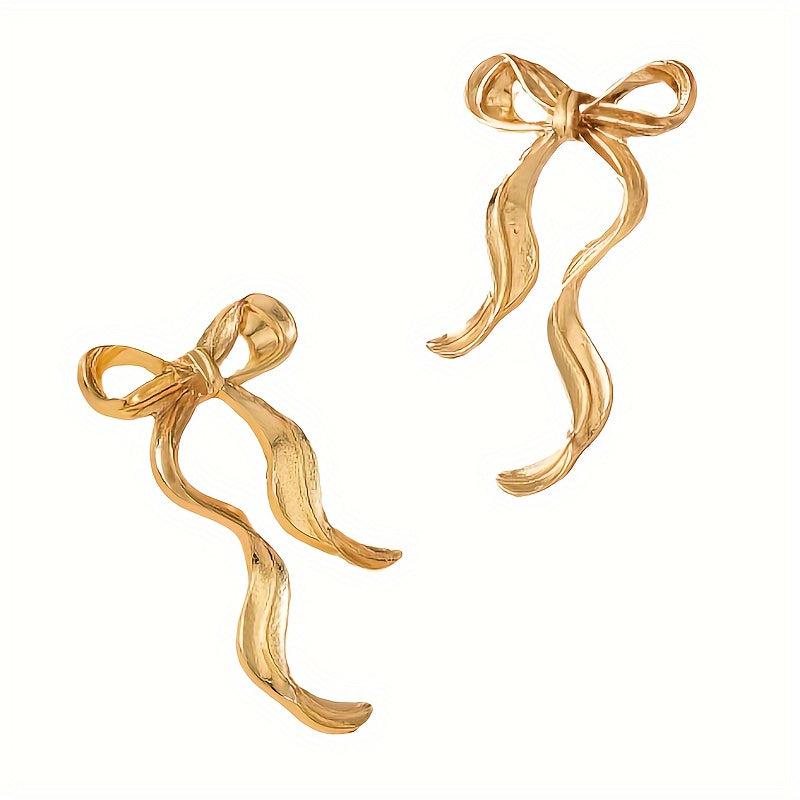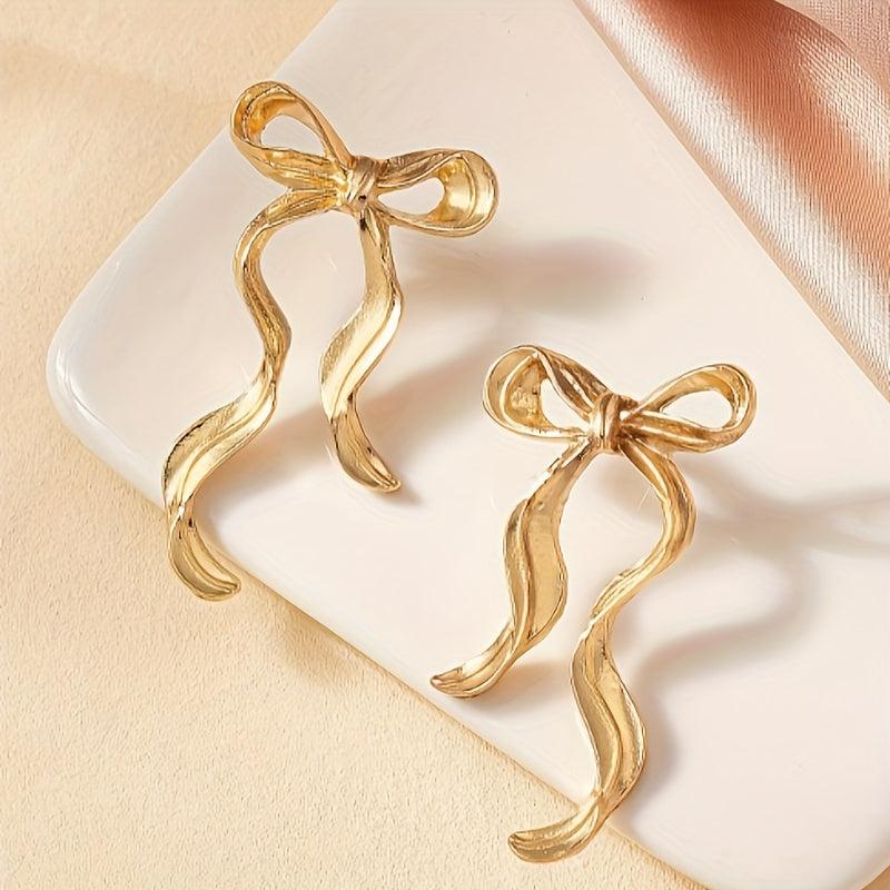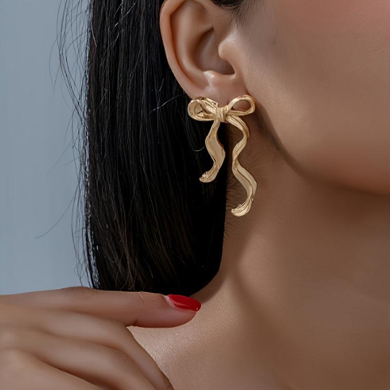 Elevate your style with these golden bowknot drop earrings. The perfect accessory for women who want to make a statement.