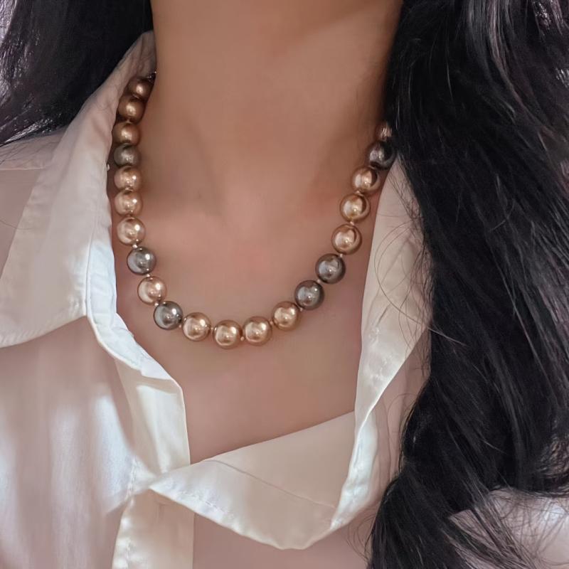 Elevate your look with this luxurious Golden Coffee freshwater pearl necklace featuring a celestial symbol design. Perfect for adding a touch of elegance and glamour to any outfit.