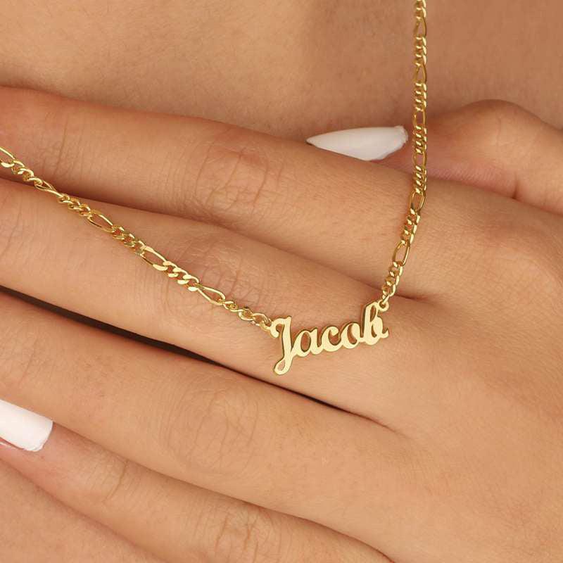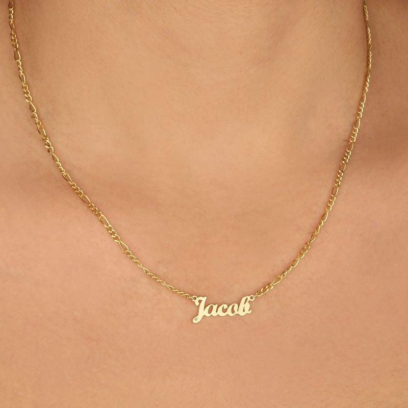 This beautiful necklace is a perfect personalized gift for moms or loved ones. It features a golden chain with a customized name pendant. Show your appreciation with this thoughtful and stylish accessory.