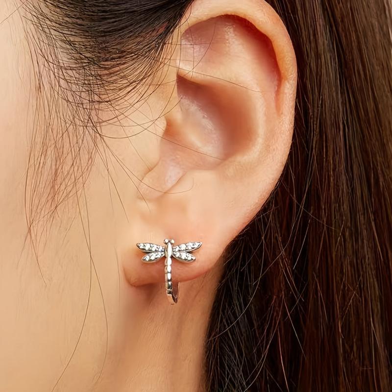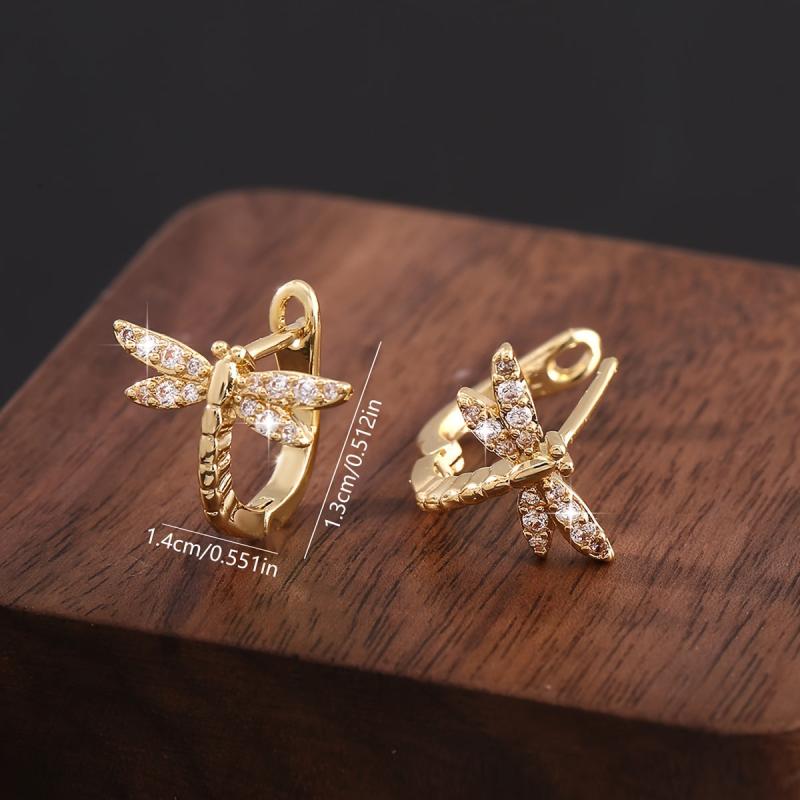 These elegant dragonfly earrings feature sparkling cubic zirconia for a vintage look. Made of copper and nickel, they are perfect for daily wear or gifting.