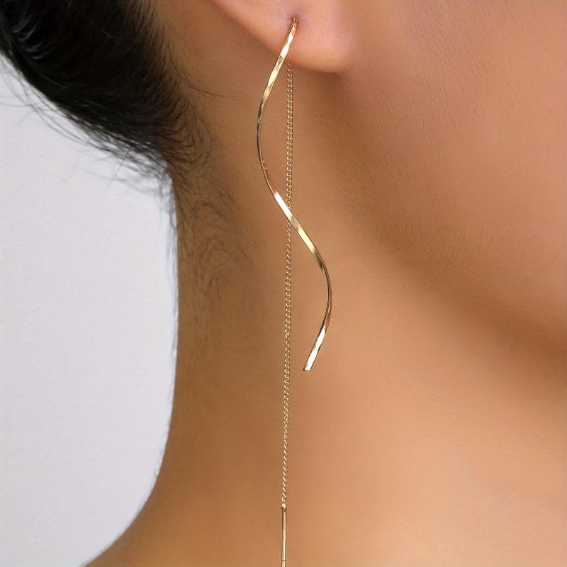 Add a touch of elegance to your look with these stunning golden drop earrings. Ideal for casual outings, special occasions, and date nights.