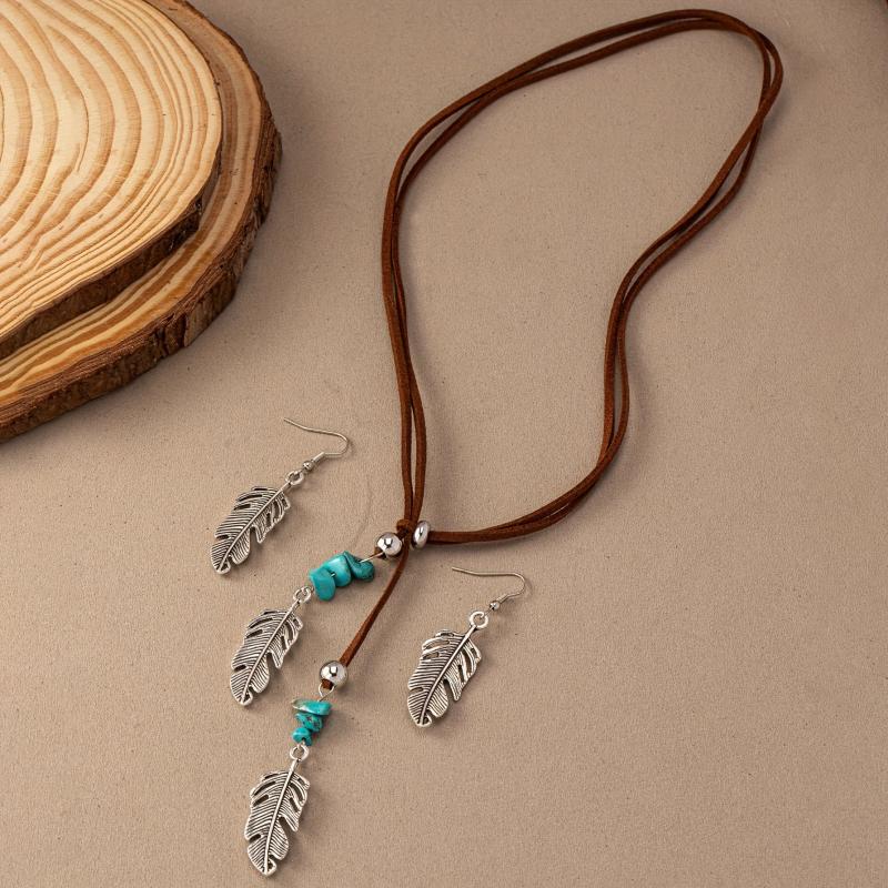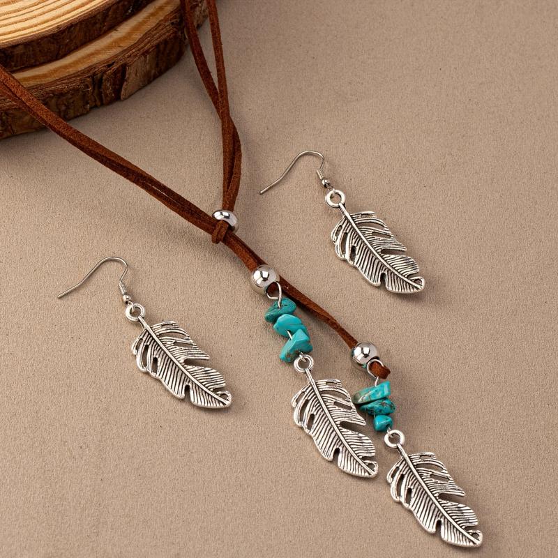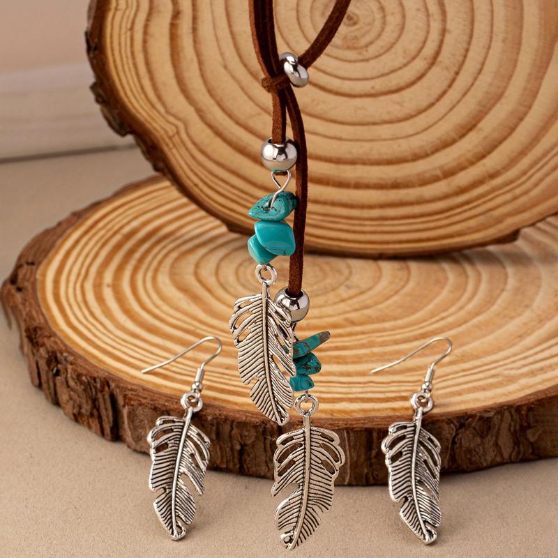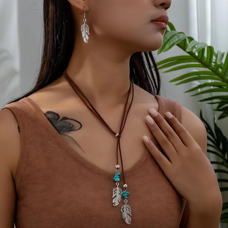 Enhance your look with this vintage Western bohemian style necklace featuring a golden feather pendant and imitating turquoise. Perfect for adding a touch of elegance to any outfit.