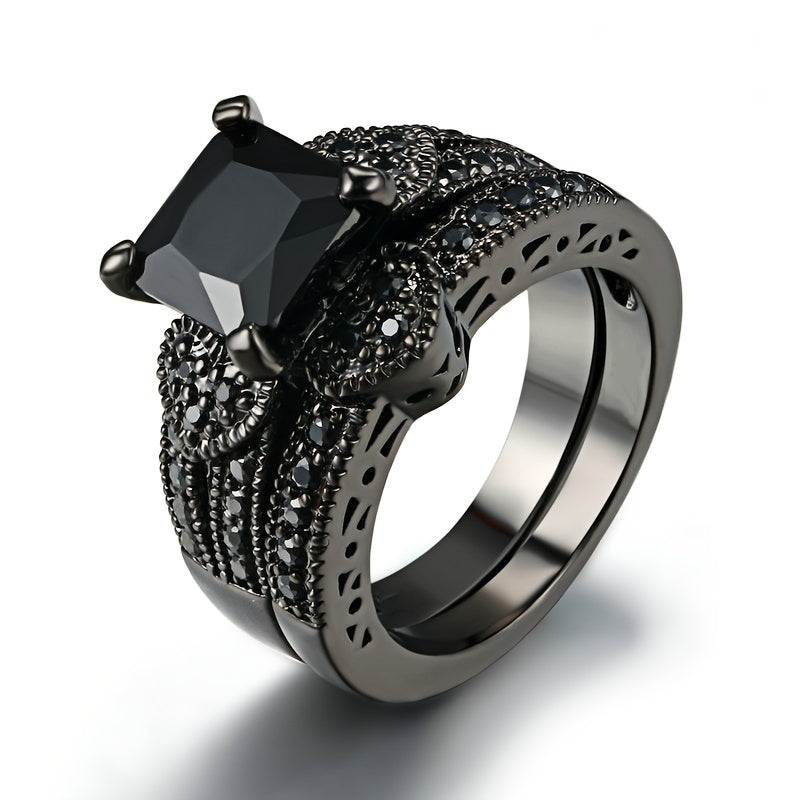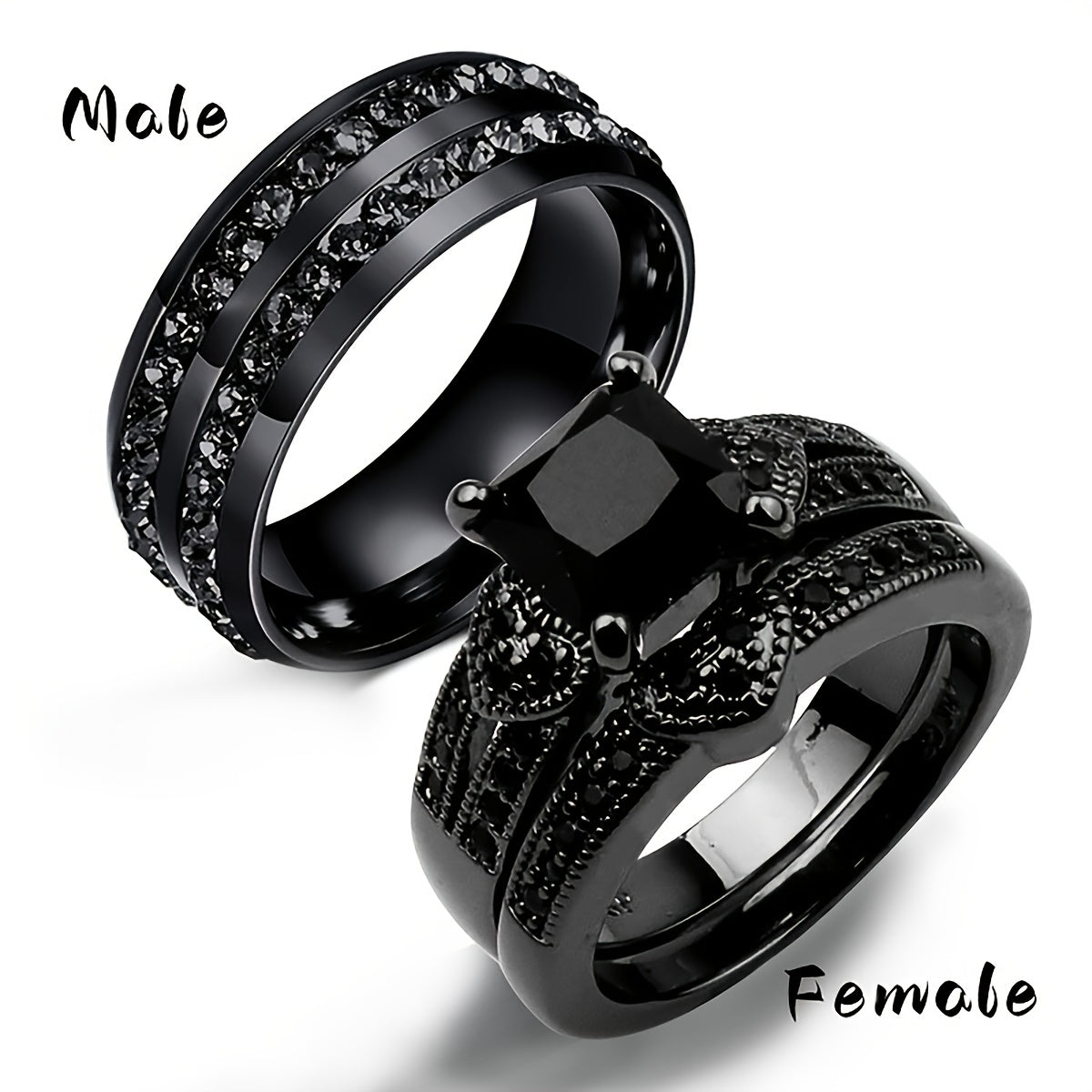 This romantic couple ring features double rows of artificial diamonds set in a golden filled band, creating a stunning and elegant look.
