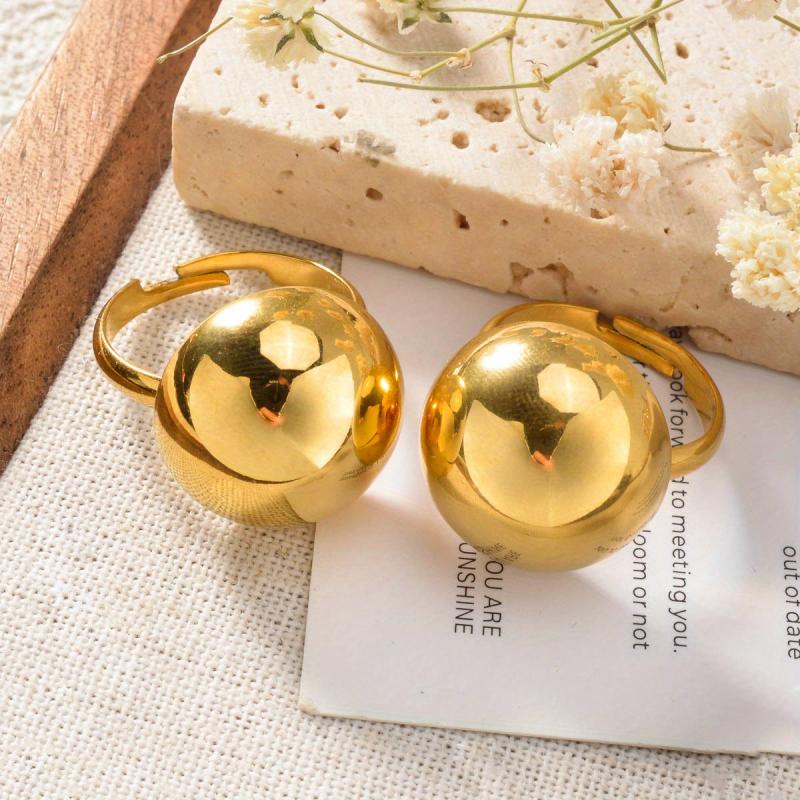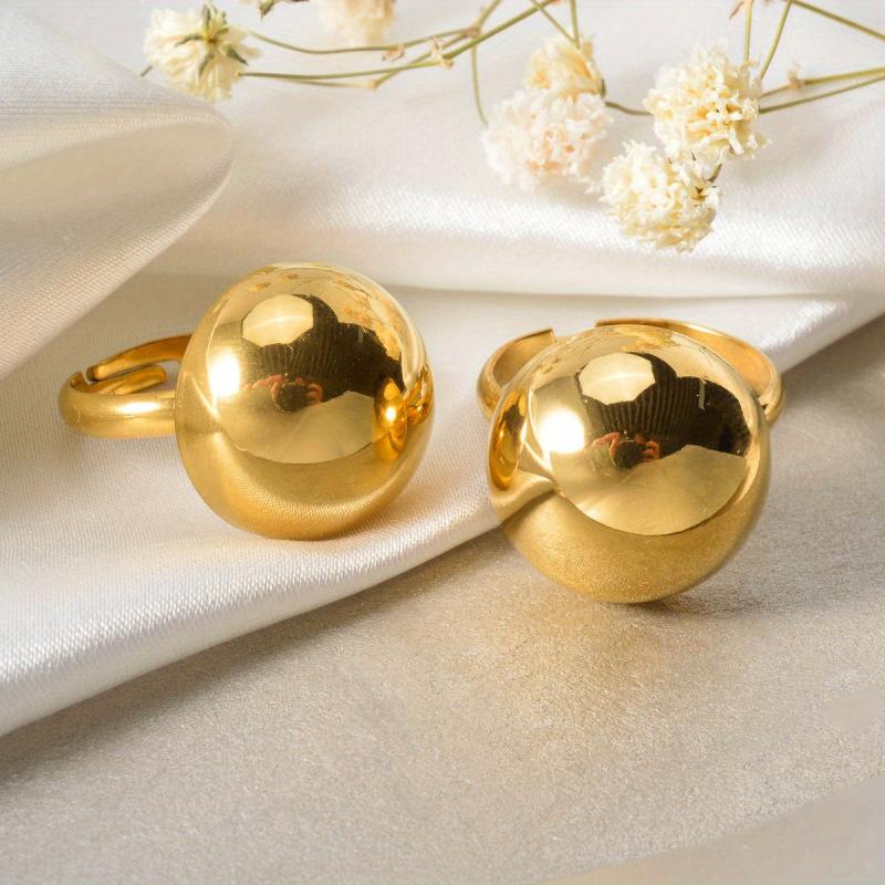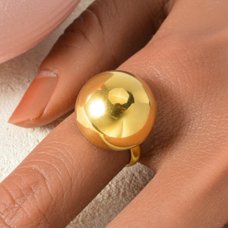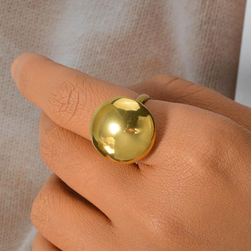 Make a statement with this exaggerated spherical ring in a stunning golden finish. Perfect for birthdays or special occasions.