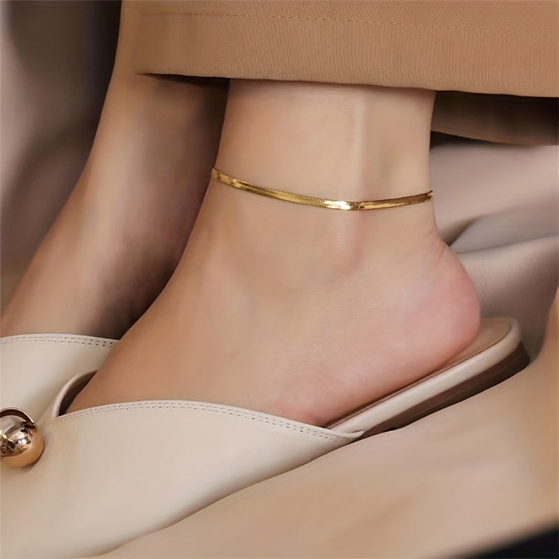 Golden Flat Snake Chain Anklet Stainless Steel Foot Chain