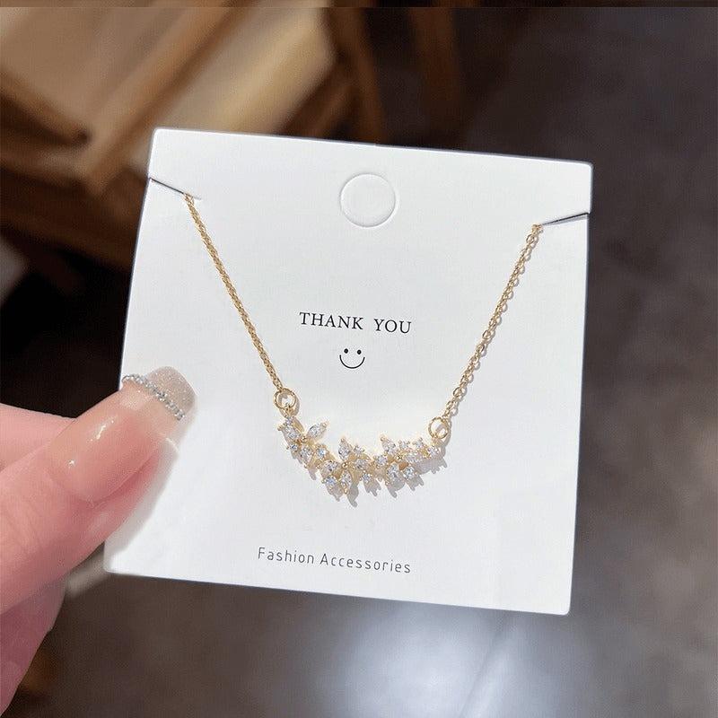 Elegant and stylish flower petal pendant necklace featuring cubic zirconia accents in a golden tone design. Perfect for daily wear and parties.
