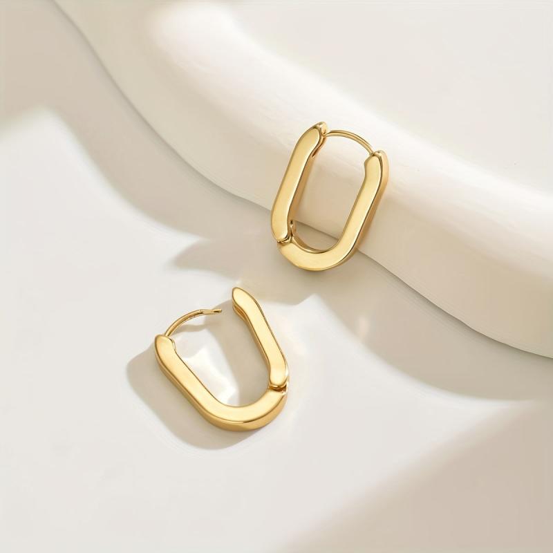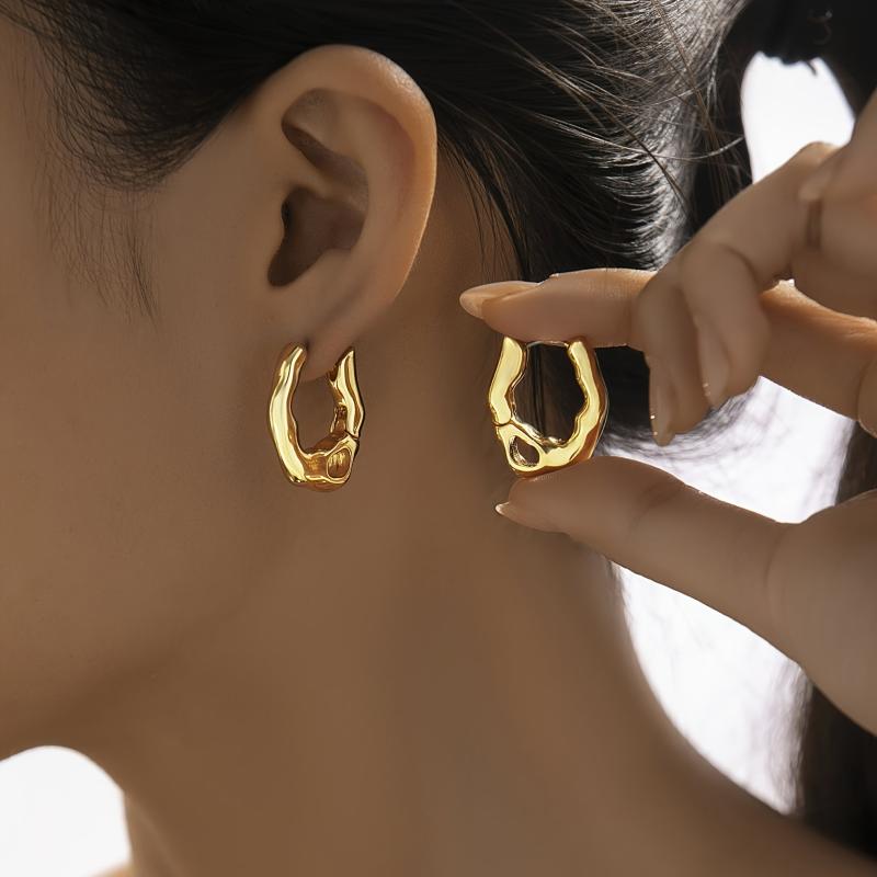 Complete your everyday look with these golden geometric earrings featuring unique irregular rectangular curves. Makes a great gift for friends!
