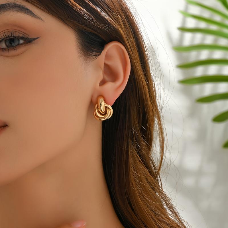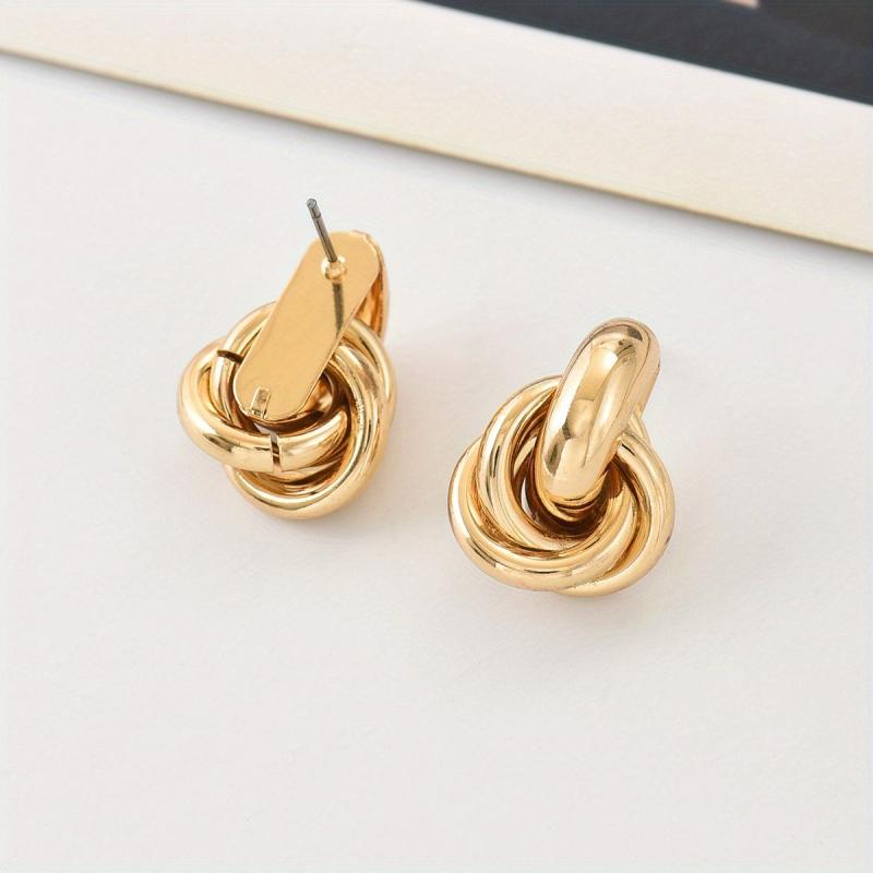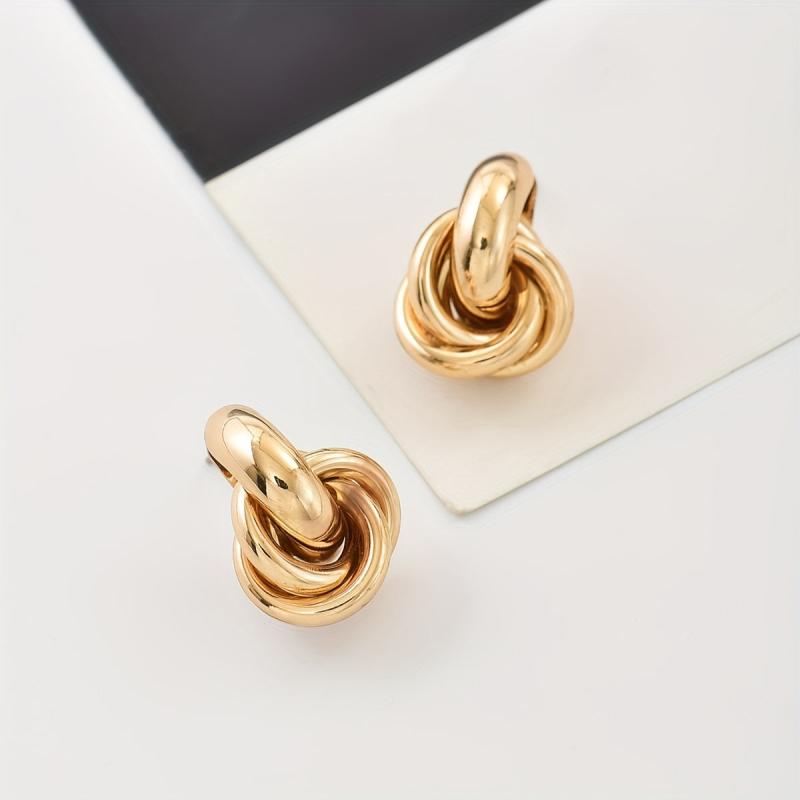 Embrace the European and American old money style with these stunning golden circle geometric twisted layer earrings that add a touch of elegance to any outfit.