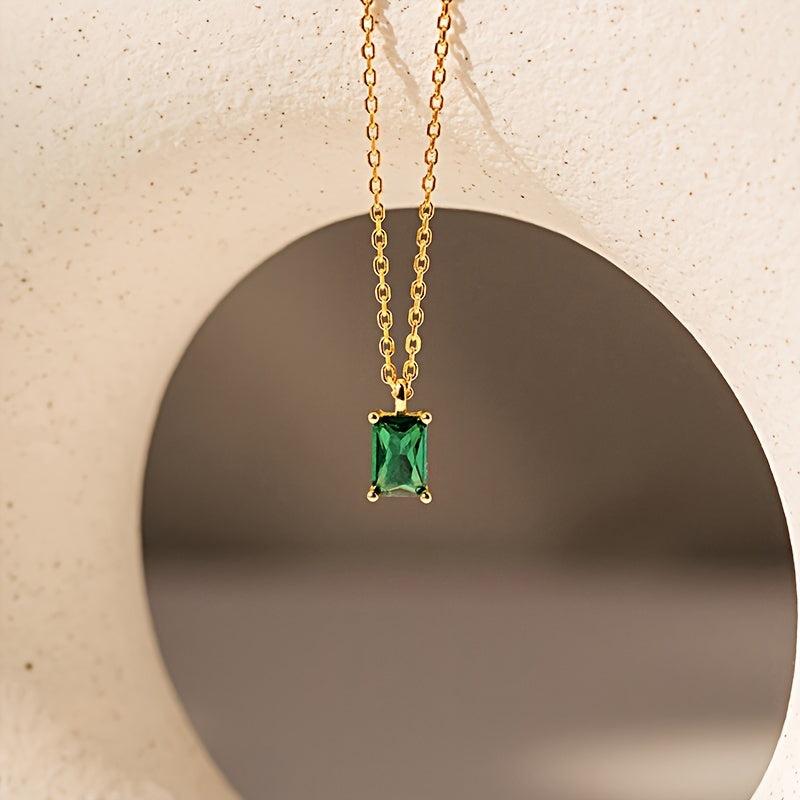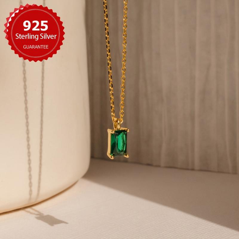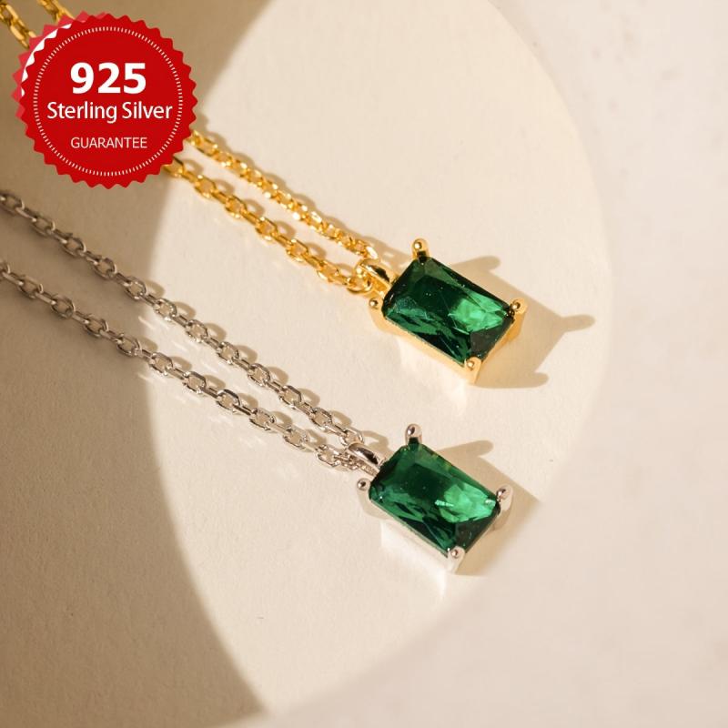 Add a touch of elegance to your outfit with this sugar cube necklace featuring a golden green stone pendant. Made from s925 sterling silver, this necklace is a perfect accessory for women.