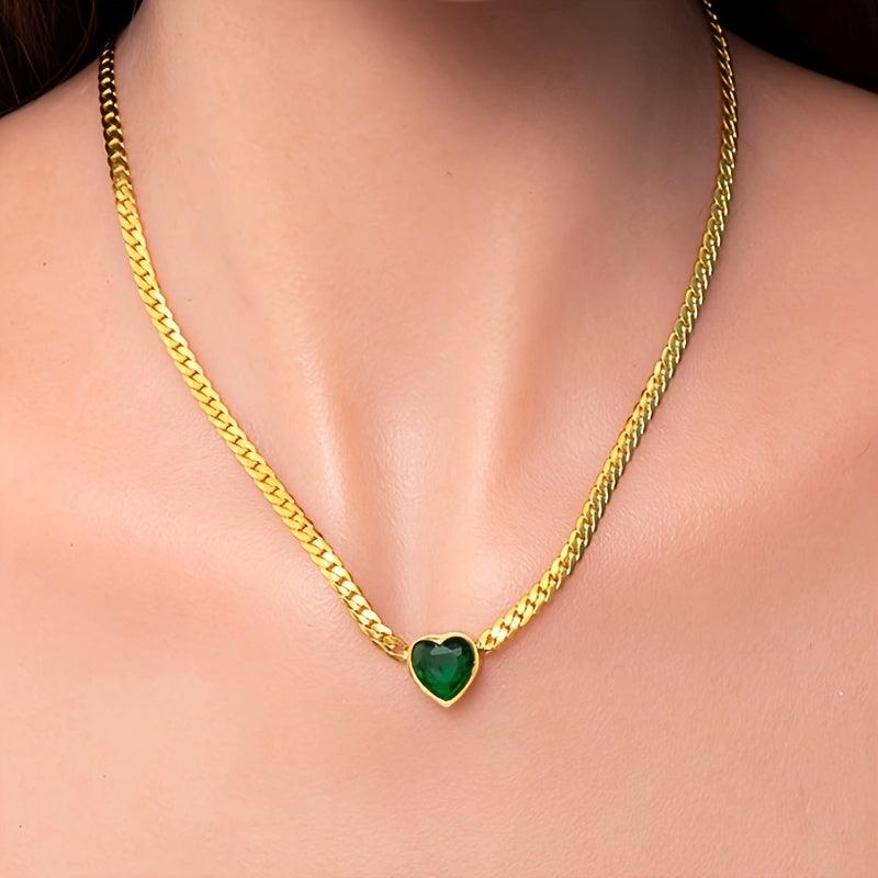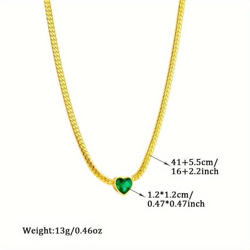 This beautiful heart pendant necklace features a green gemstone and rhinestone accents, making it a perfect piece for everyday wear or as a gift for a special occasion. The necklace is made of stainless steel, adding durability and elegance to the design.