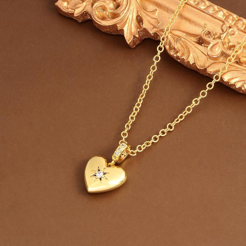 Add a touch of elegance to your look with this heart pendant necklace featuring sparkling synthetic zirconia. Suitable for both casual and formal occasions.