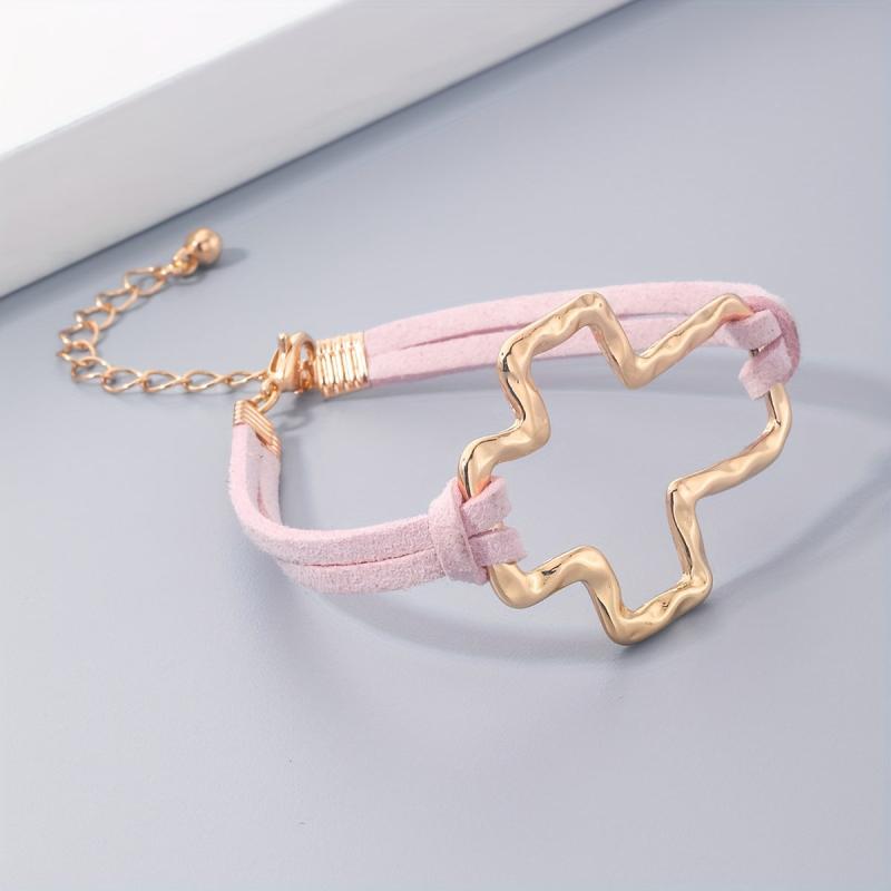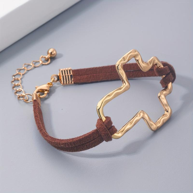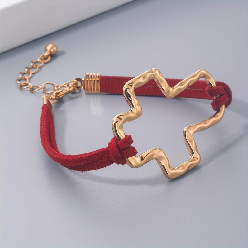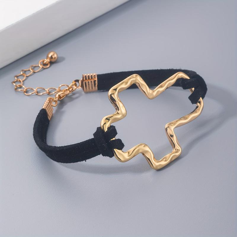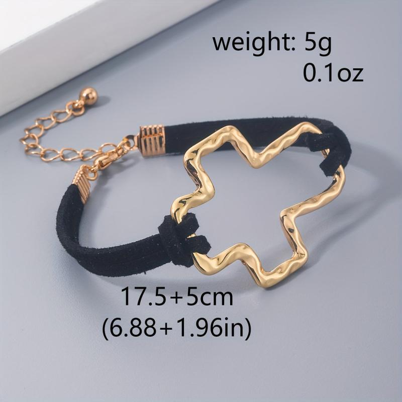 Embrace the minimalist bohemian trend with this golden rope bracelet featuring a hollow cross design. Suitable for both men and women, this 18K plated bracelet exudes a stylish and trendy vibe.