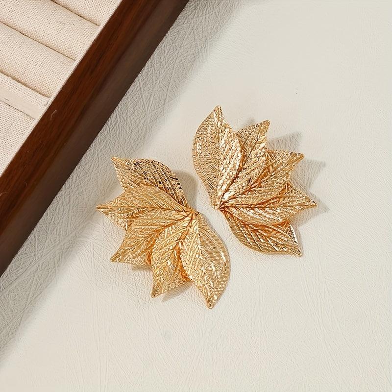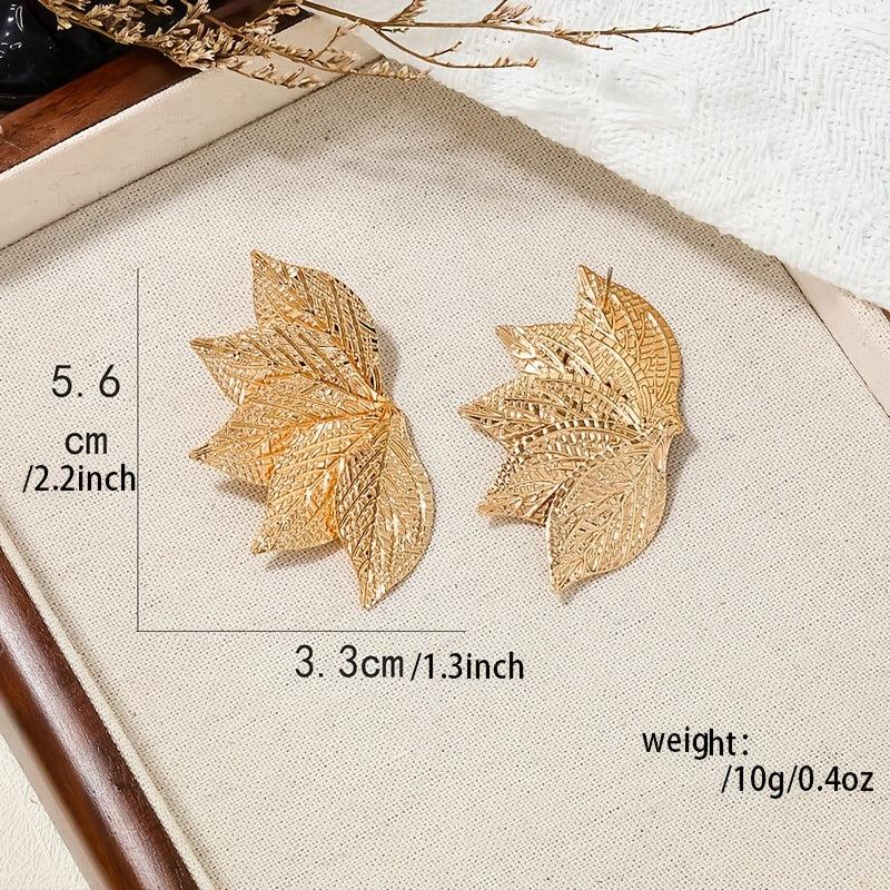 Add a touch of elegance to your outfit with these golden tone leaf stud earrings. Made of alloy with stainless steel posts, these earrings are perfect for daily wear and special occasions. They make a great gift for your loved ones!