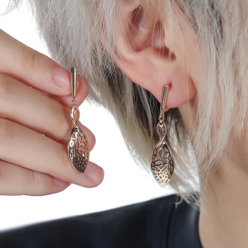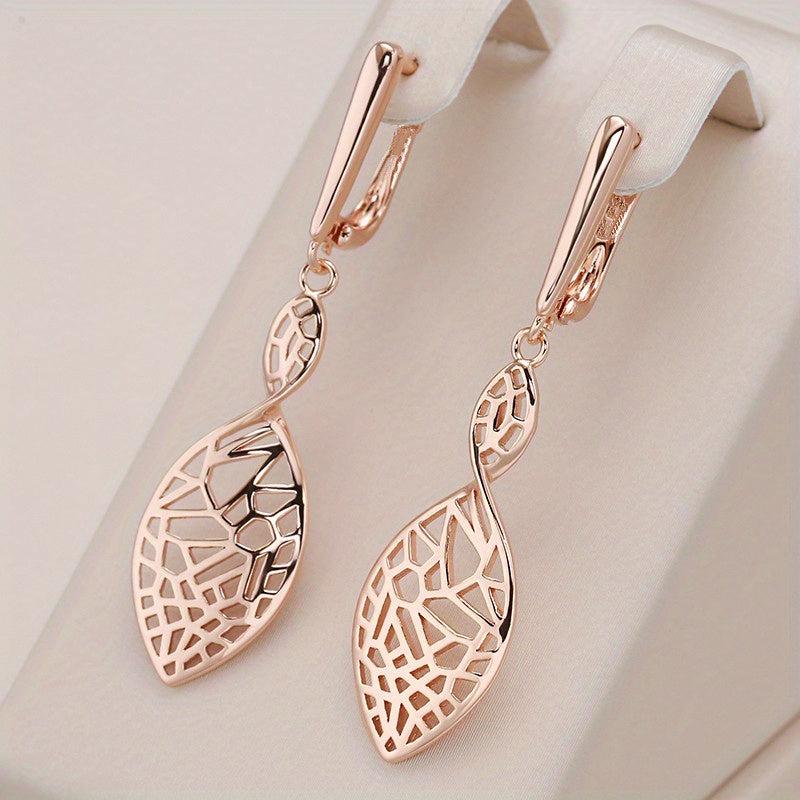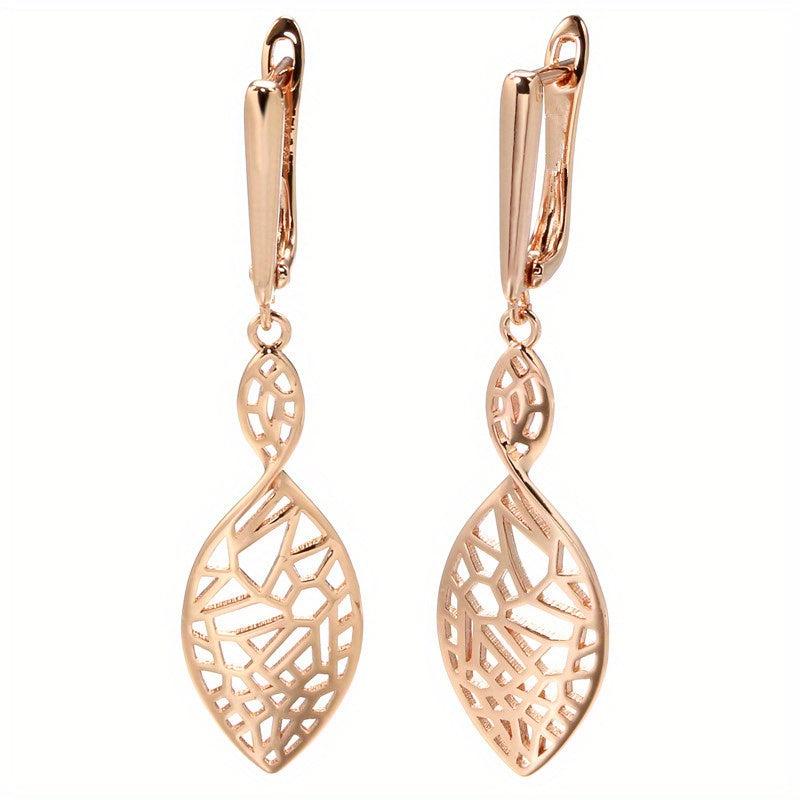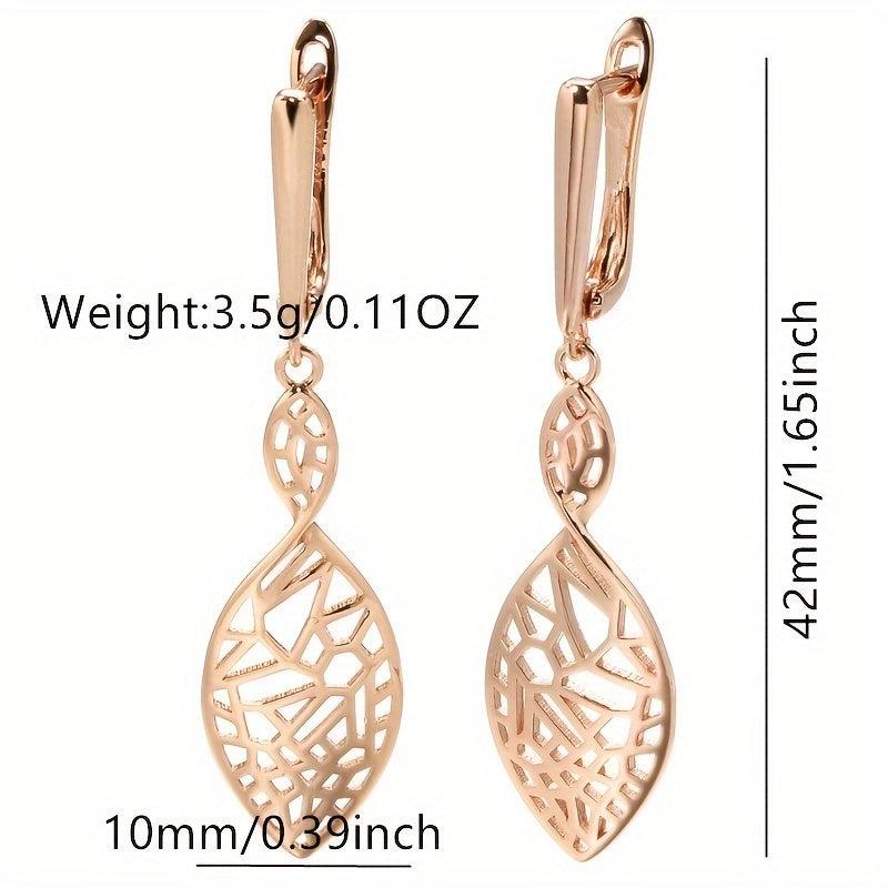 Enhance your look with these stunning golden leaf style long drop earrings, perfect for any occasion.