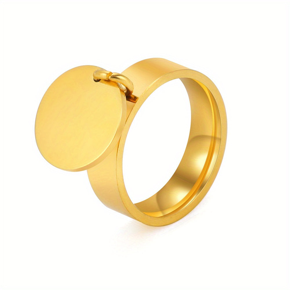 This stylish stainless steel ring features a round pendant design, making it the perfect gift for men on their anniversary. The minimalist golden finish adds a touch of elegance to any outfit.