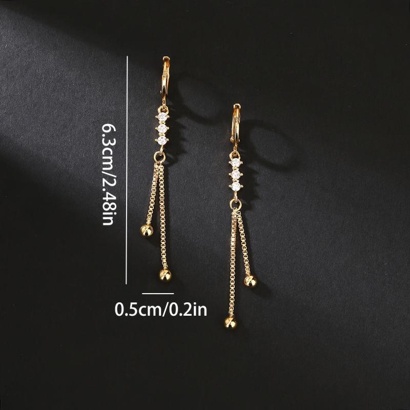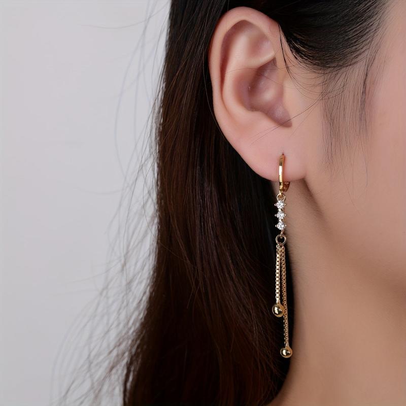 Elegant earrings with three sparkling zirconia tassels, perfect for parties or casual wear. Ideal for vacation style.