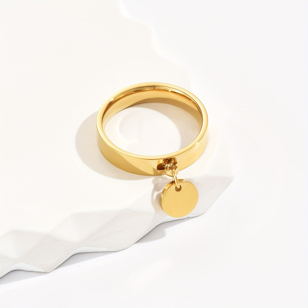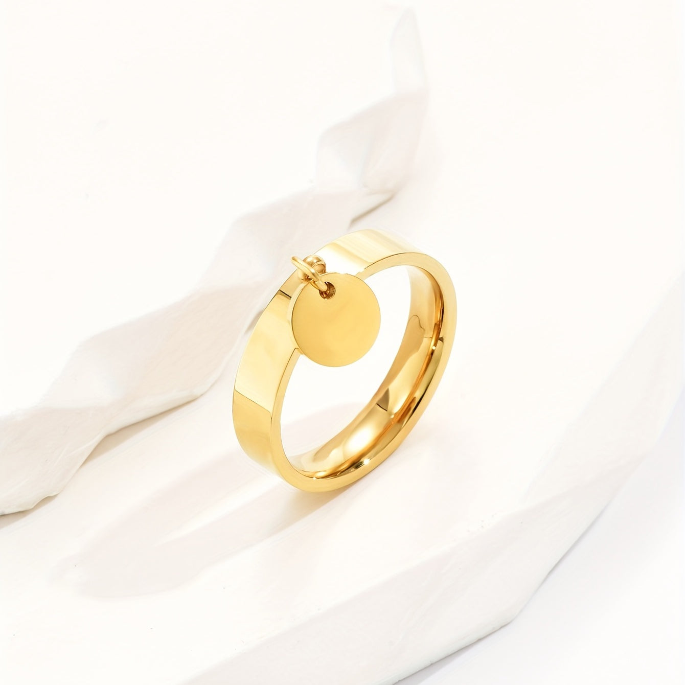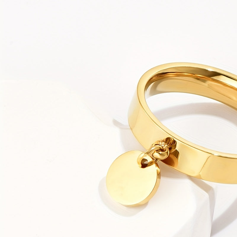 This stainless steel ring features a hanging disc design, making it a creative and stylish choice for men.