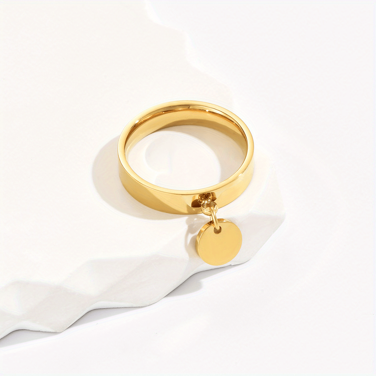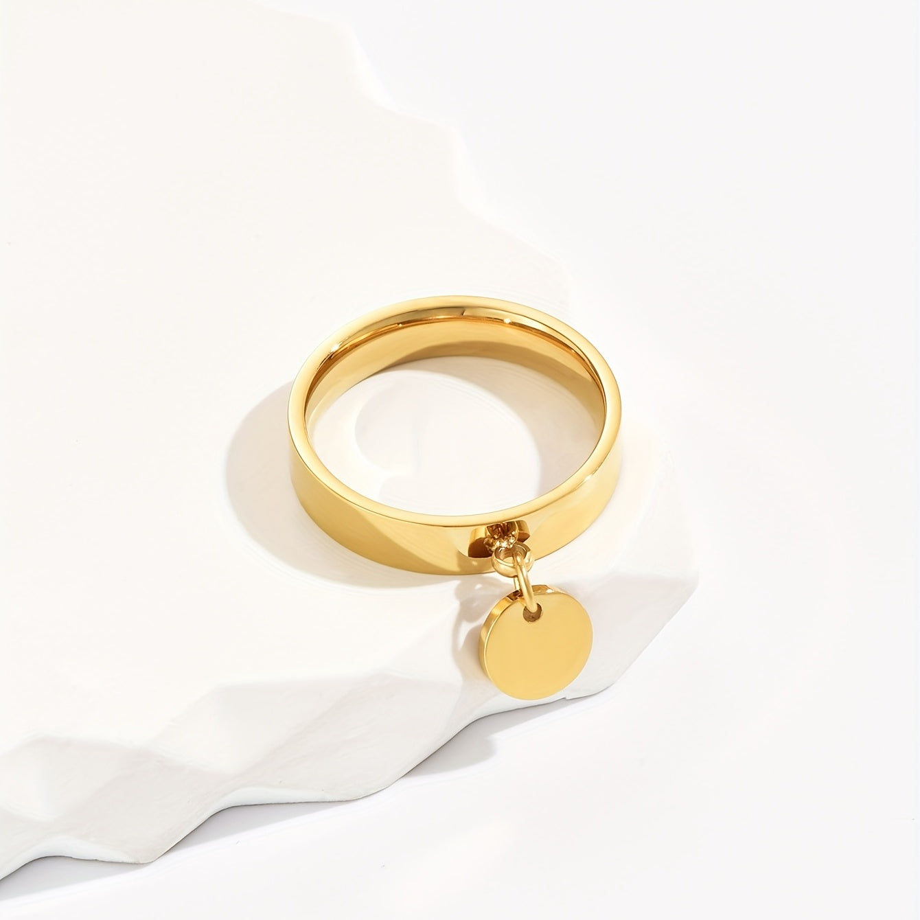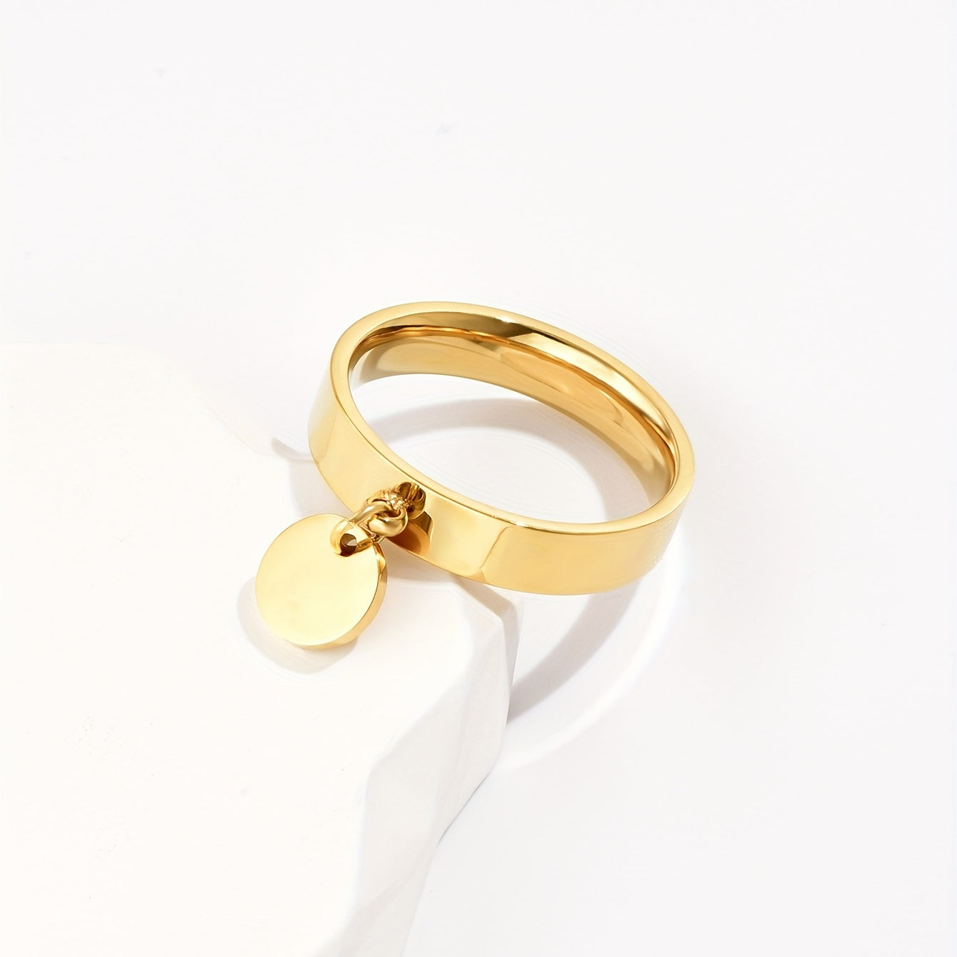 This stainless steel ring features a hanging disc design, making it a creative and stylish choice for men.