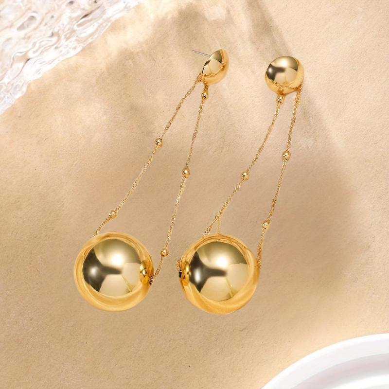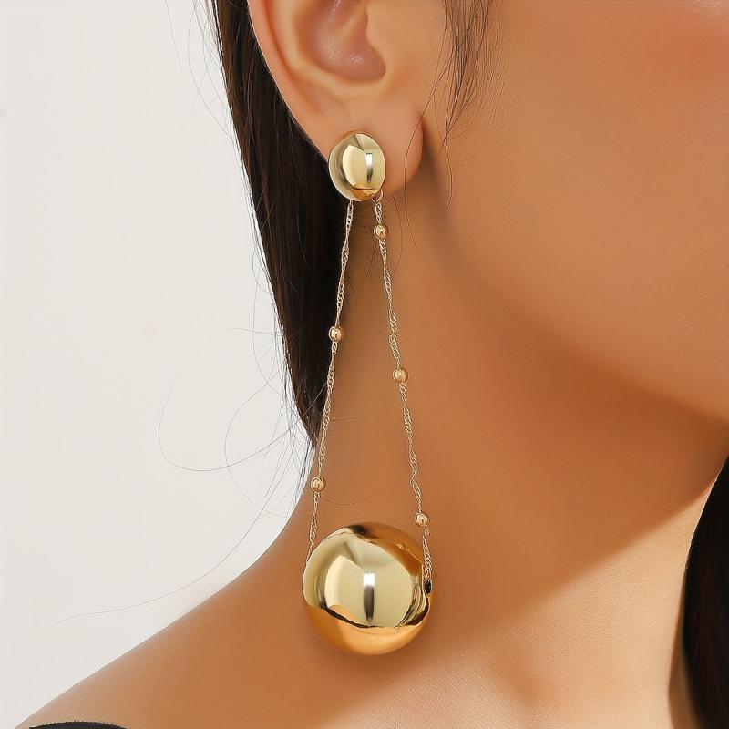 Elegant long tassel earrings with retro golden spherical design, perfect for a glamorous look.
