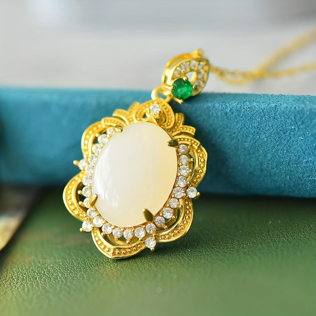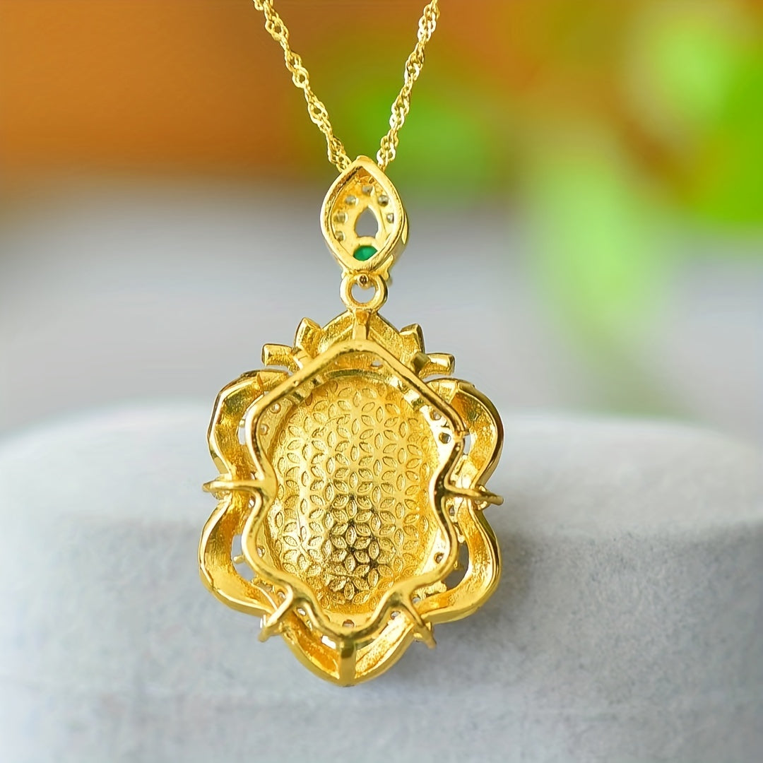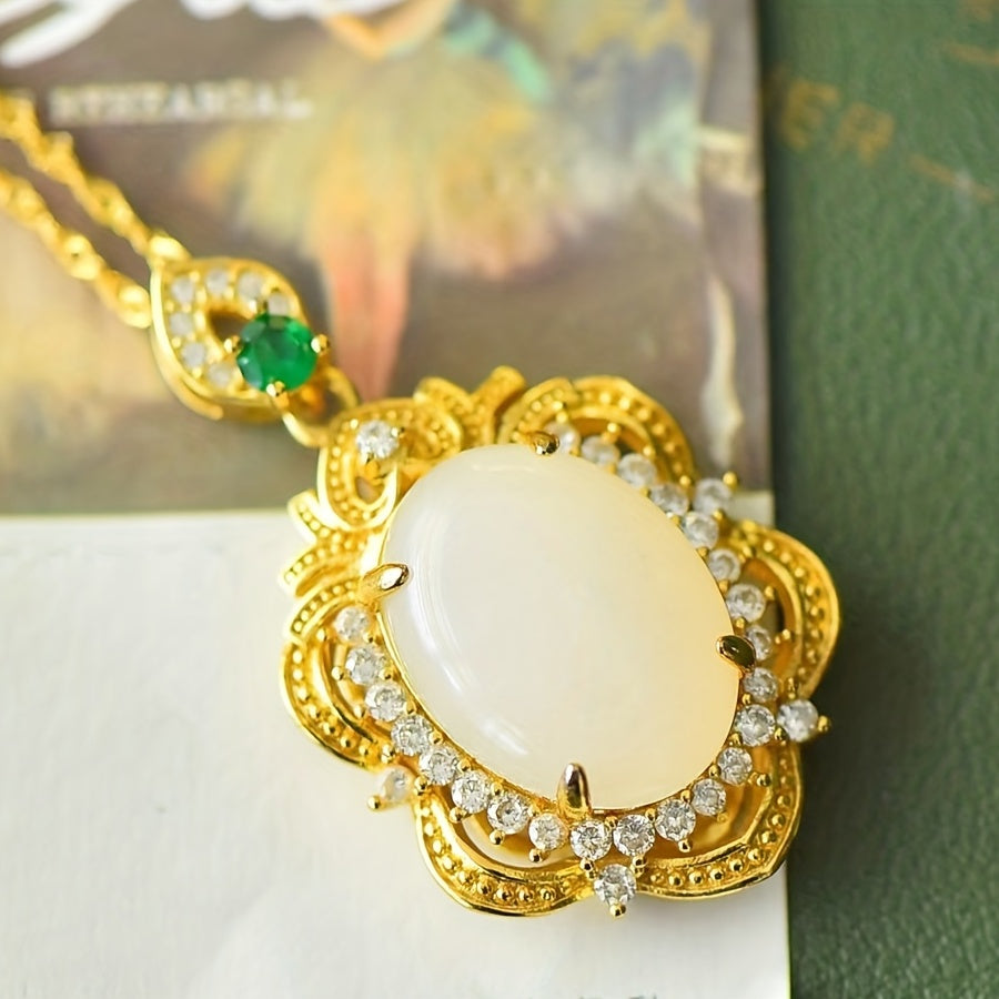 This natural jade pendant features a beautiful golden silk jade egg face inlay. Perfect for men and women to wear as a birthstone accessory.