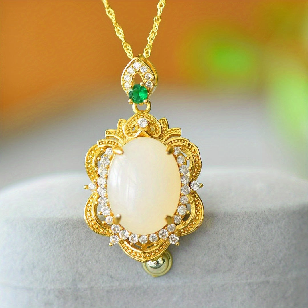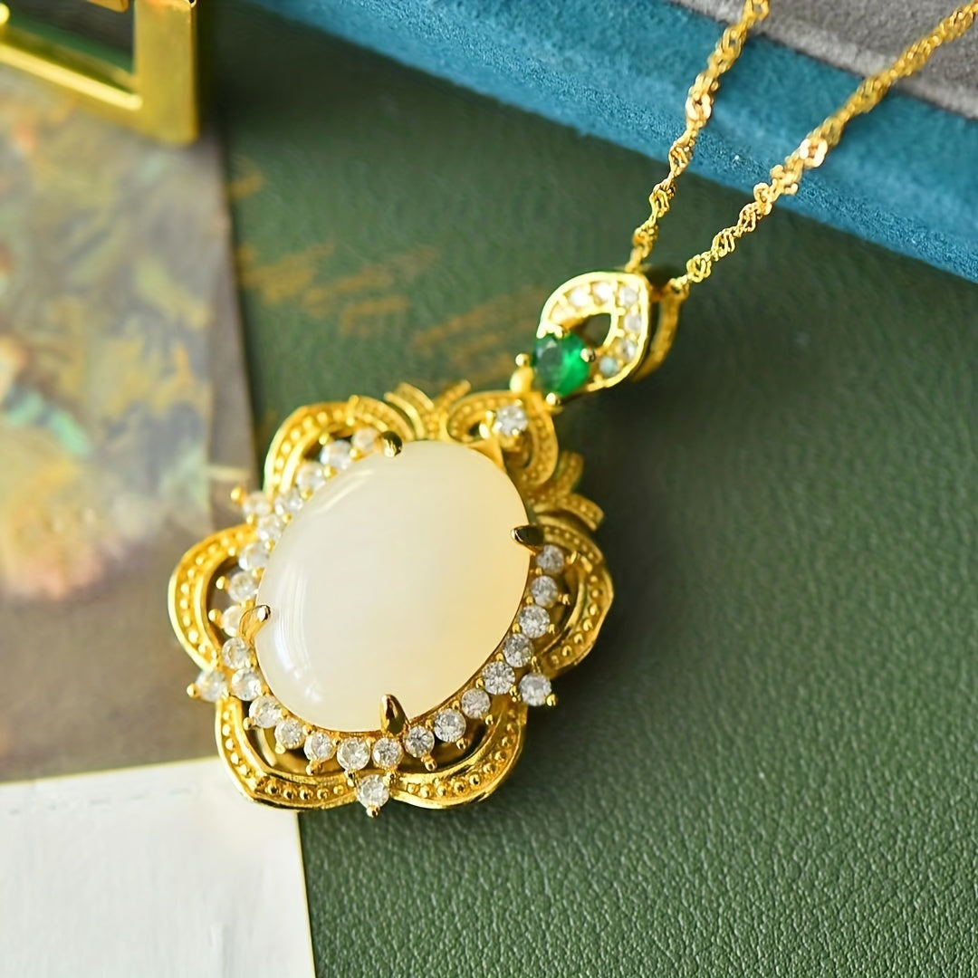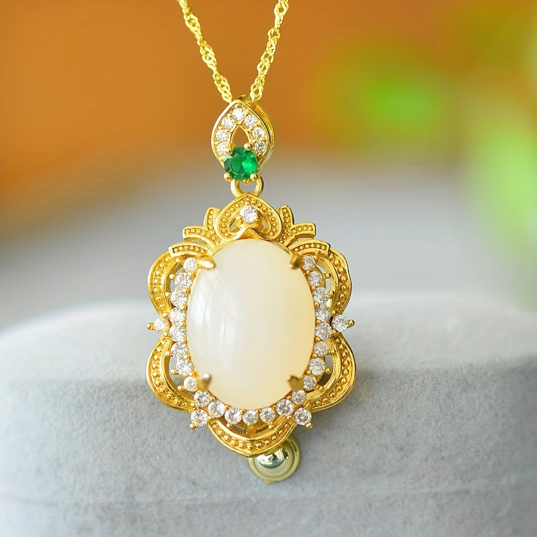This natural jade pendant features a beautiful golden silk jade egg face inlay. Perfect for men and women to wear as a birthstone accessory.