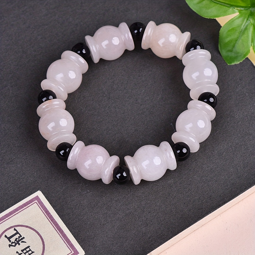 Elegant and charming bracelet featuring golden silk jade with a touch of violet. Perfect for adding a pop of color to any outfit.