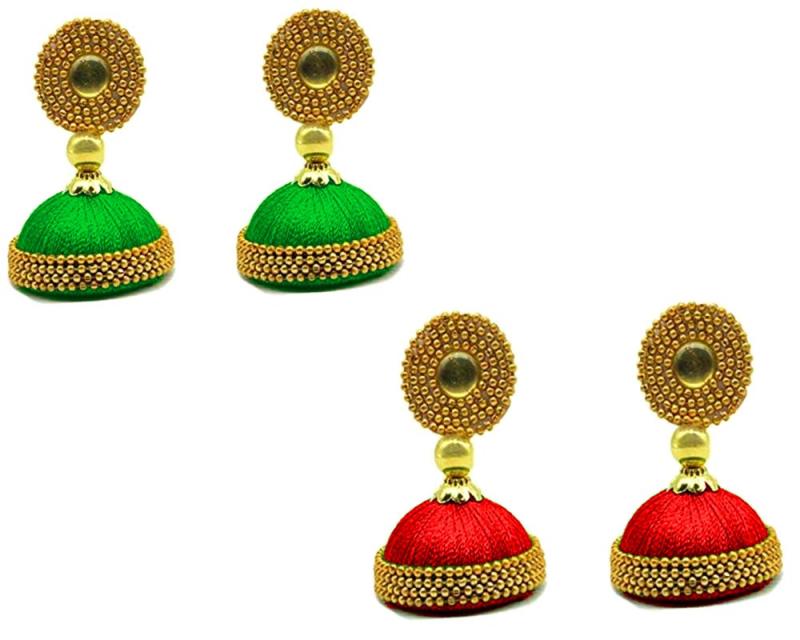 Add a touch of elegance to your ethnic wear with these stunning golden silk jhumki earrings. Available in a variety of vibrant colors, these silk dori jhumkis are sure to make a statement.