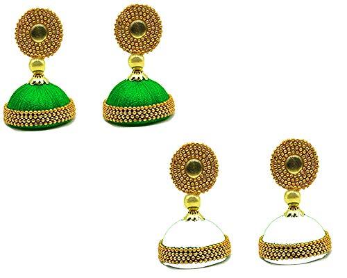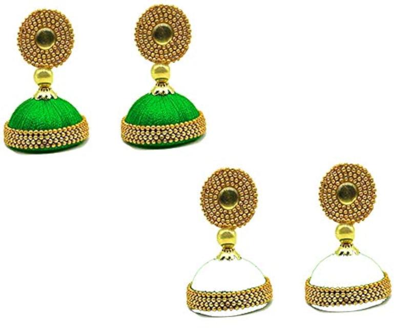 Elegant jhumki earrings crafted with golden silk thread in assorted colors. Perfect for ethnic wear.