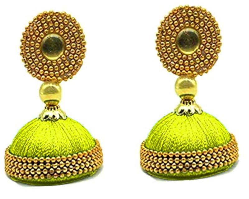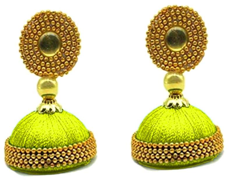 Beautiful jhumki earrings made with golden silk thread and silk dori available in various colors.